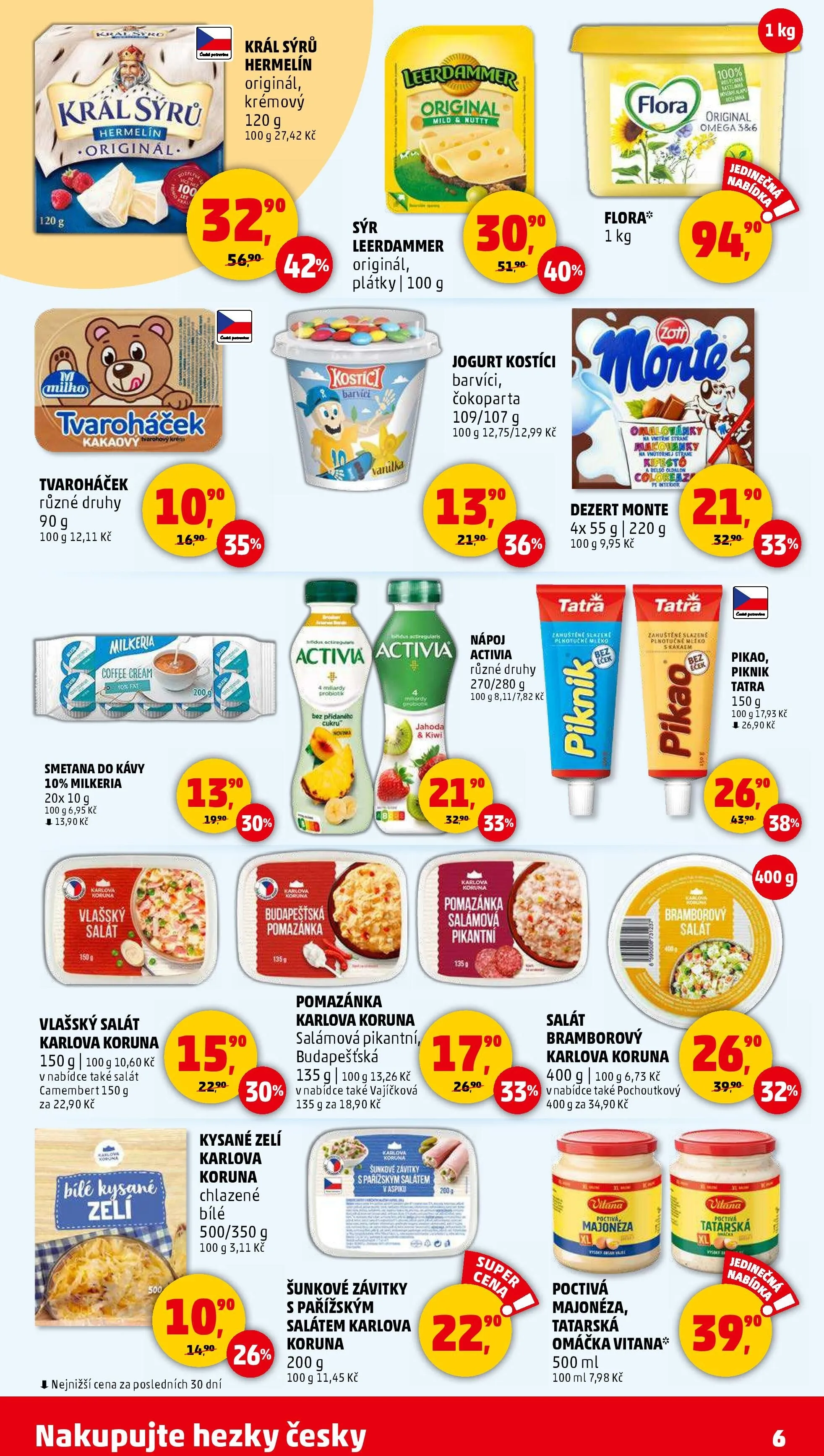 V letáku obchodu Penny Market najdete širokou nabídku kvalitních produktů. Mezi nimi se objevují oblíbené sýry, jako je král sýrů hermelín a plátky Leerdammer. Pro milovníky mléčných výrobků je k dispozici smetana do kávy Milkeria a tvaroháček v různých druzích.