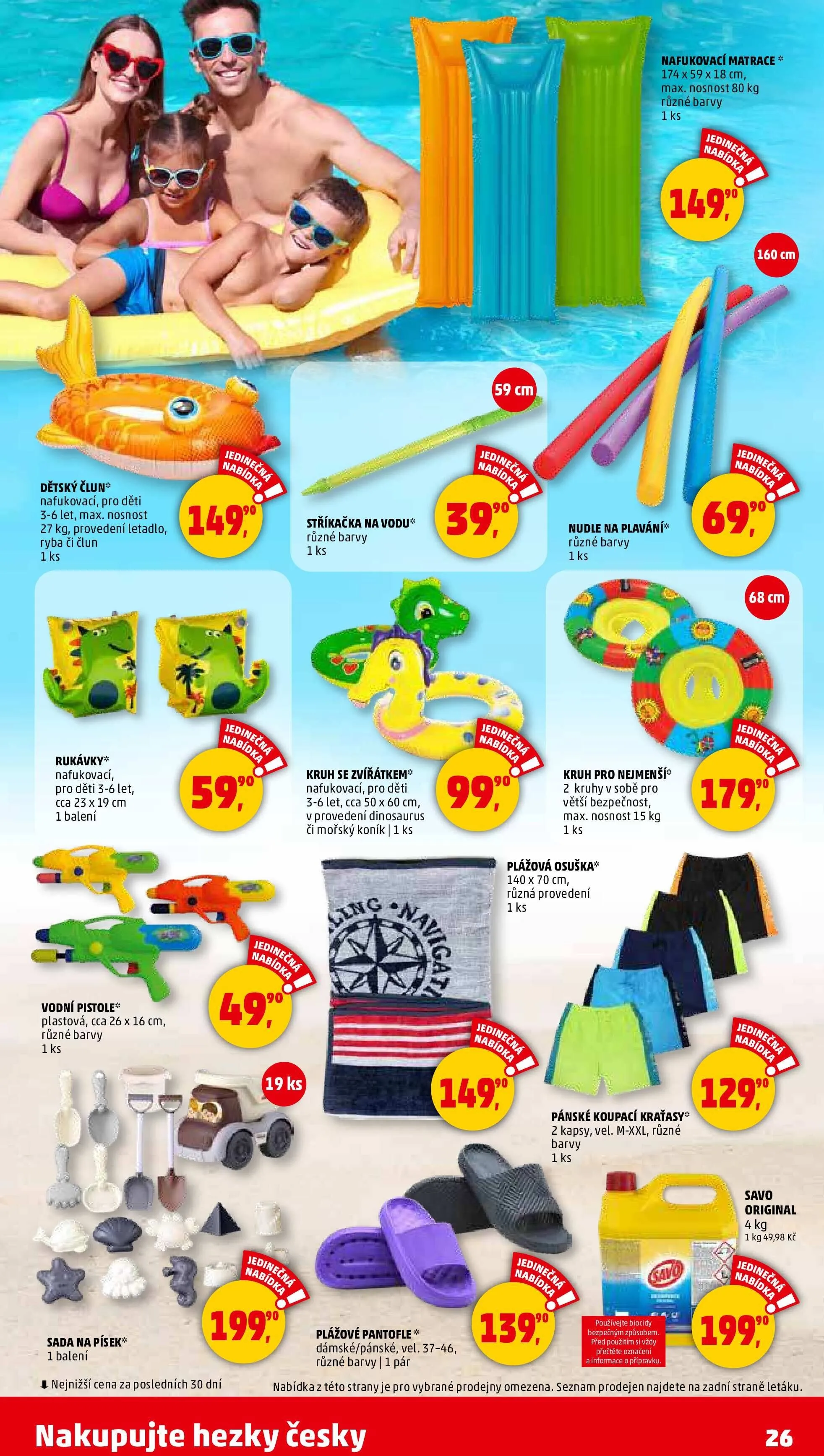 V letáku obchodu Penny Market najdete širokou nabídku letních produktů pro děti i dospělé. Mezi nimi je nafukovací matrace o rozměrech 174x59x18 cm s maximální nosností 80 kg, dostupná v různých barvách. Pro malé dobrodruhy máme dětský nafukovací člun, ideální pro děti ve věku 3-6 let, s motivy letadla, ryby nebo člunu, a rukávky pro bezpečné plavání.