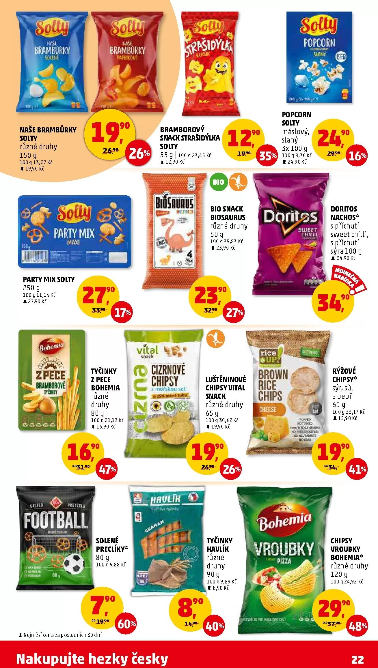 Produkt: naše brambůrky, kategorie: snack, cena: 12,90