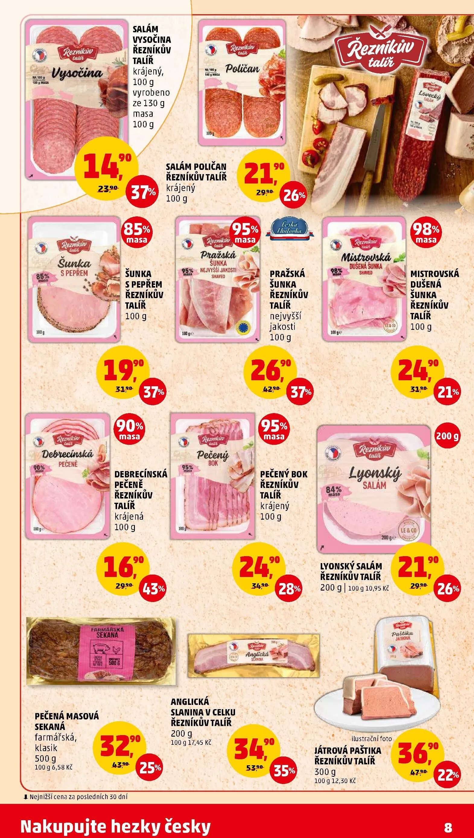 Pražská šunka Řezníkům talíř, 100 g, 26,90 Kč, 37%
