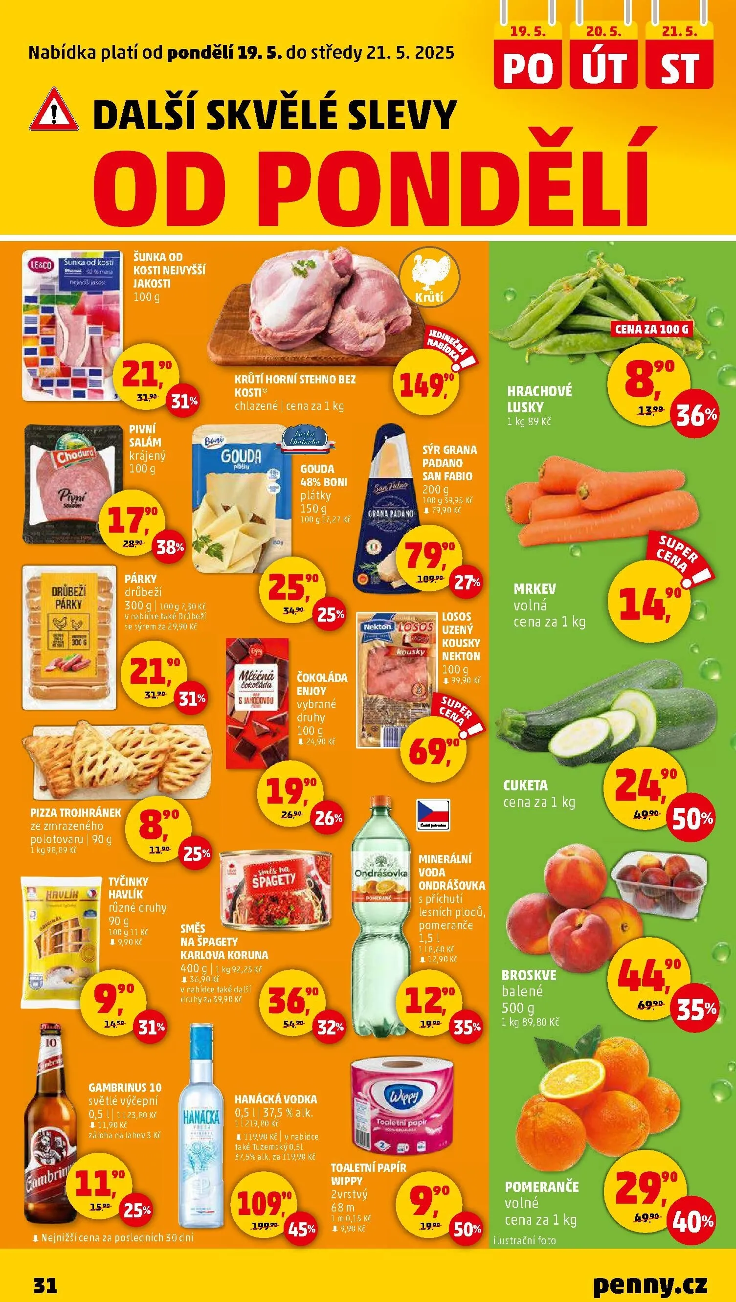 V letáku obchodu Penny Market najdete skvělé nabídky, které platí od pondělí 19. do středy 21. května 2025. Mezi hlavními produkty se objevují drůbeží párky a šunka od kosti nejvyšší jakosti, které jsou nyní za výhodné ceny. Dále si můžete vybrat z různých druhů sýrů, jako je Gouda nebo Grana Padano.