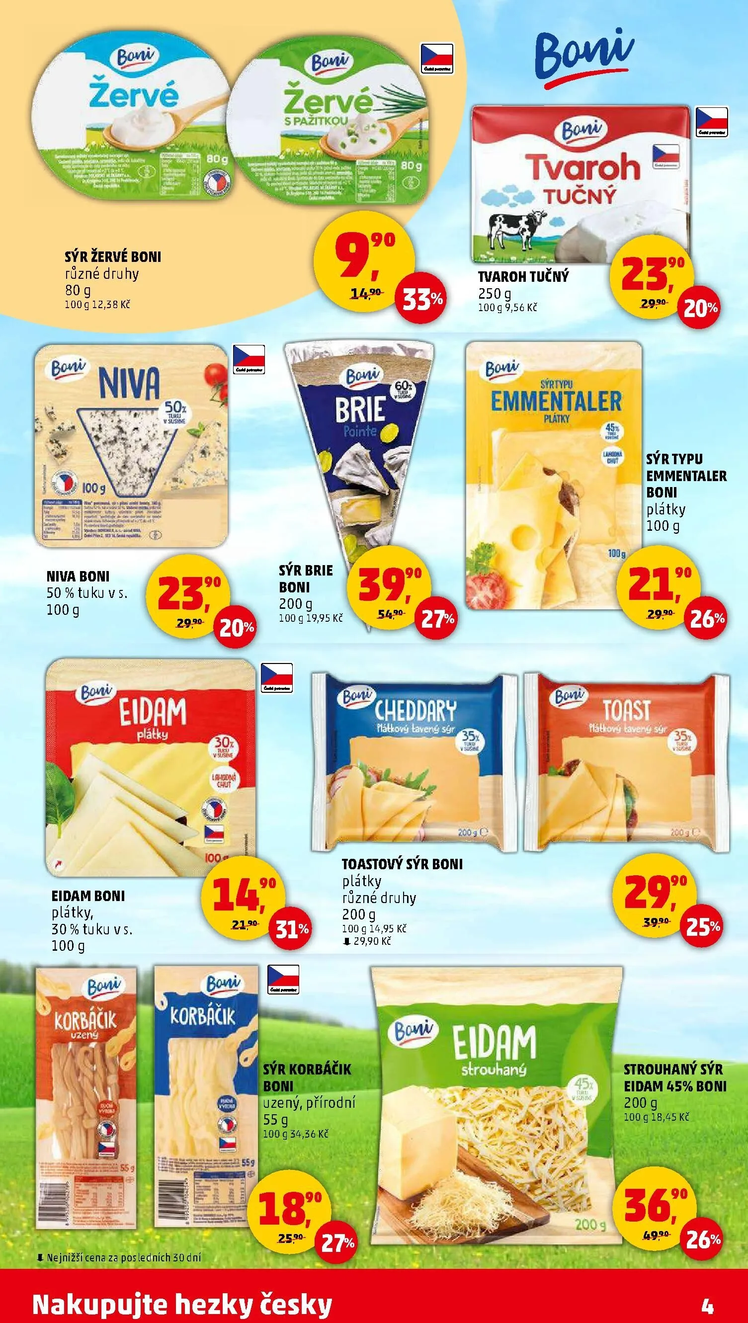 V letáku obchodu Penny Market najdete širokou nabídku sýrů a tvarohů. Mezi produkty patří žervé sýr Boni v různých druzích za cenu 12,58 Kč za 100 g. Dále nabízíme Nivu Boni s 50 % tuku, která je skvělou volbou pro milovníky výrazných chutí. Sýr Brie Boni o hmotnosti 200 g je k dispozici za 19,95 Kč za 100 g.