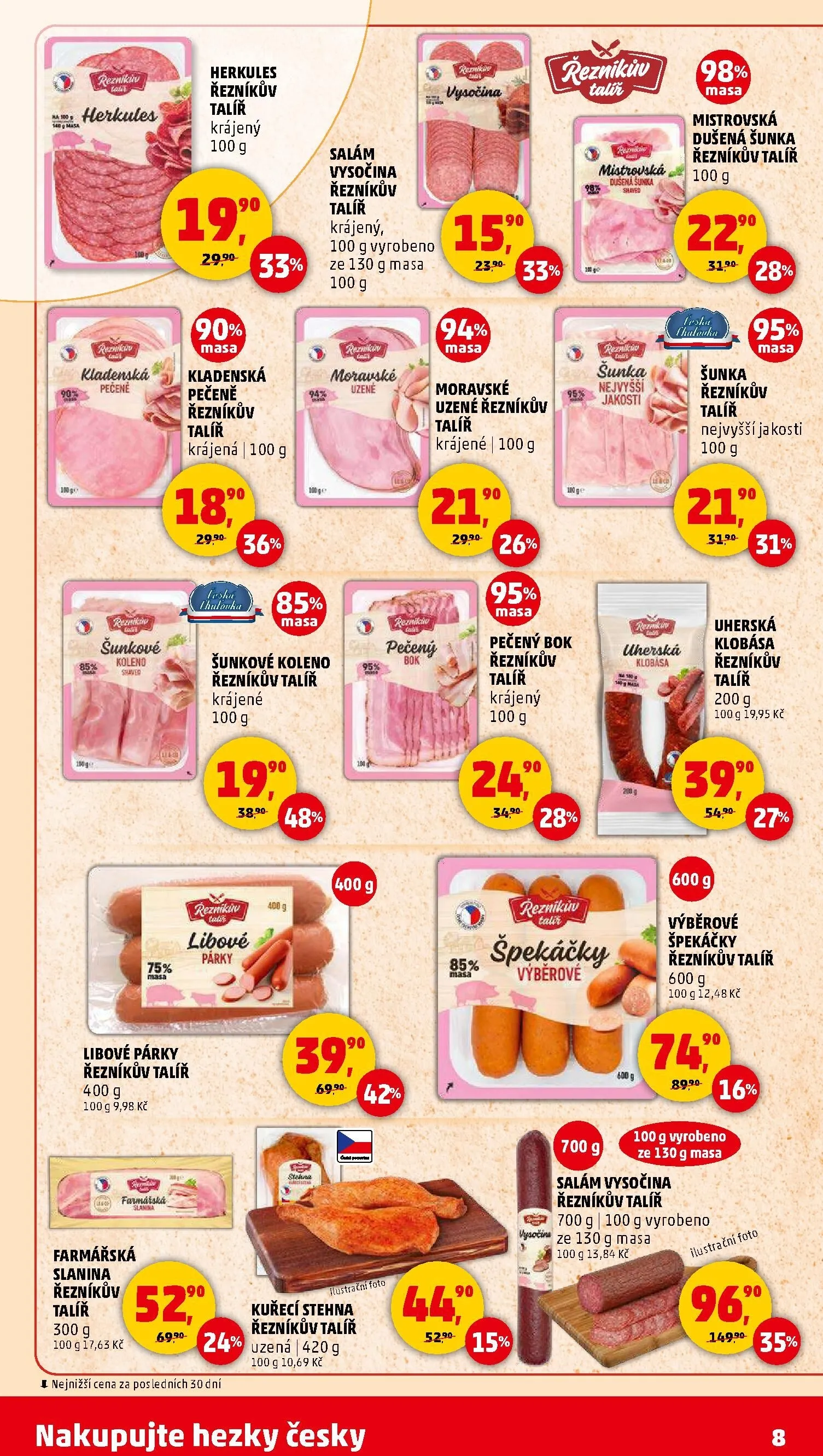 V letáku obchodu Penny Market najdete širokou nabídku kvalitních masných výrobků. Mezi nimi se objevují oblíbené produkty jako řezníkův talíř, který je k dostání v krájené variantě za 90 Kč za 100 g. Dále si můžete vybrat šunkové koleno, libové párky nebo výběrové špekáčky, které jsou také cenově dostupné.