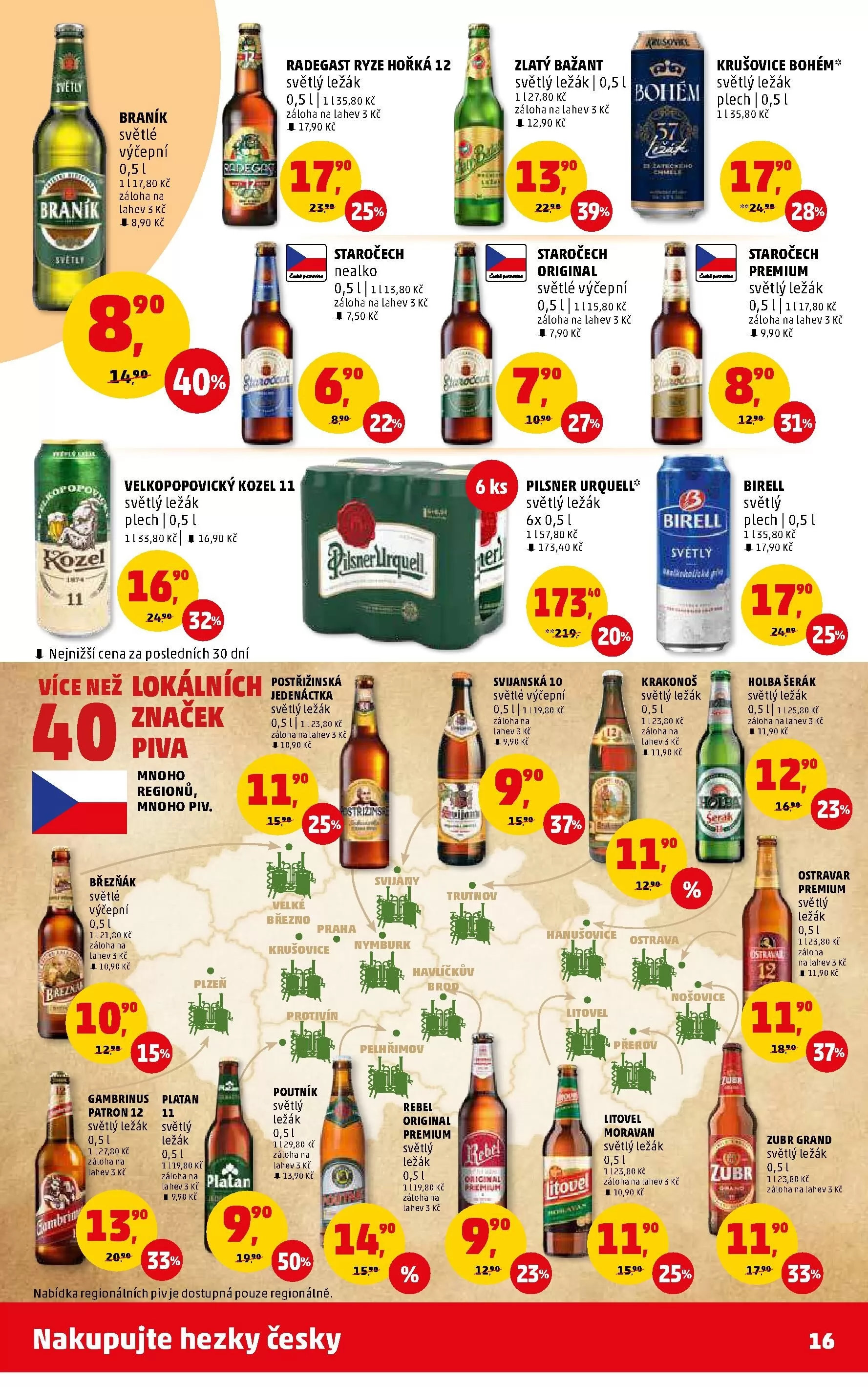 nabídka regionálních pivje dostupná pouze regionálně.