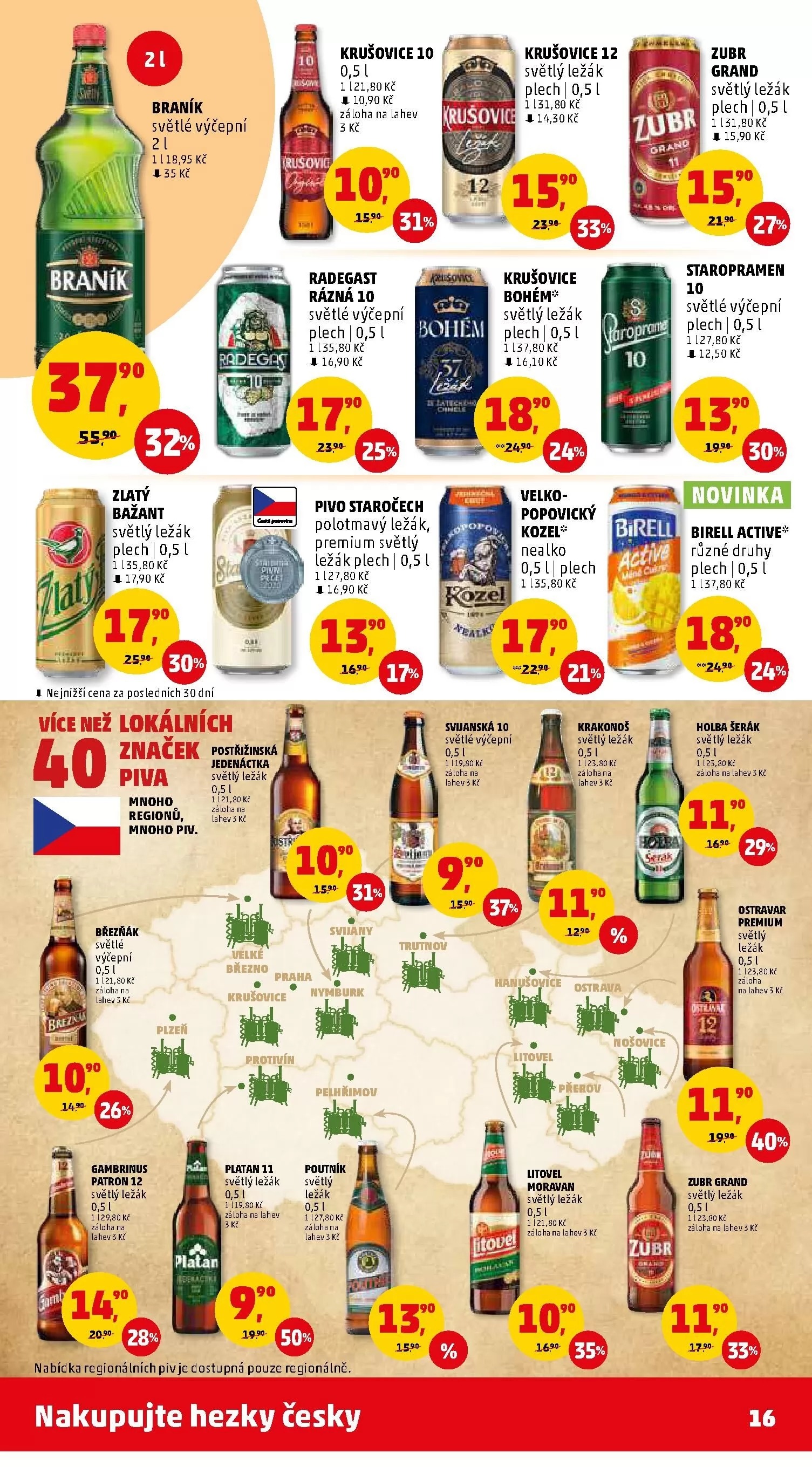 nabídka regioná lních piv je dostupná pouze regionálně.