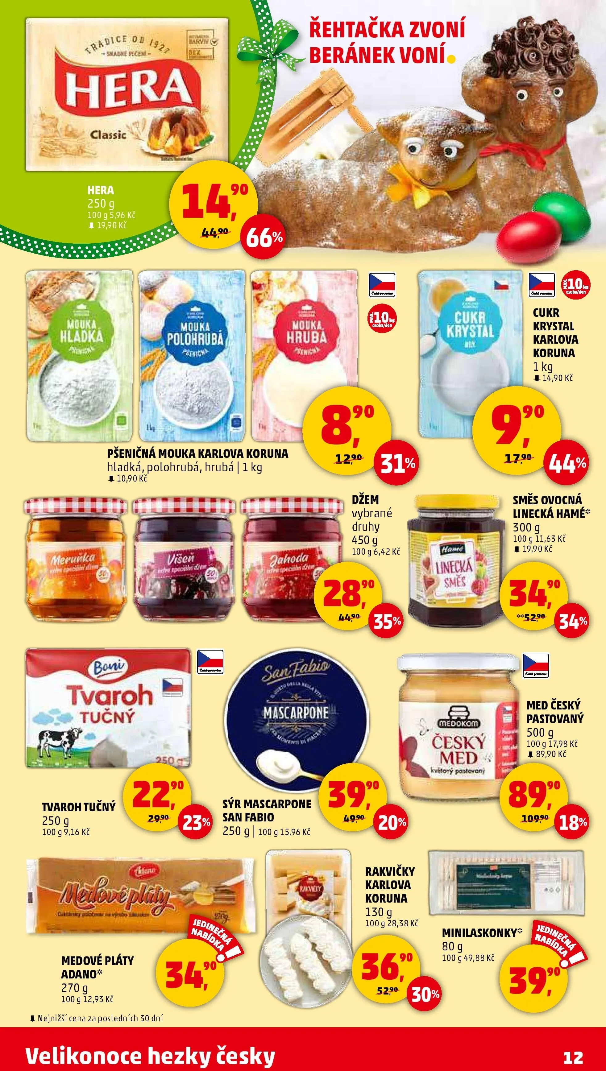 Mezi nimi se nachází tučný tvaroh Hera o hmotnosti 250 g za 19,90 Kč, nebo hladká pšeničná mouka Karlova Koruna, která je k dostání za 10,90 Kč za 1 kg.