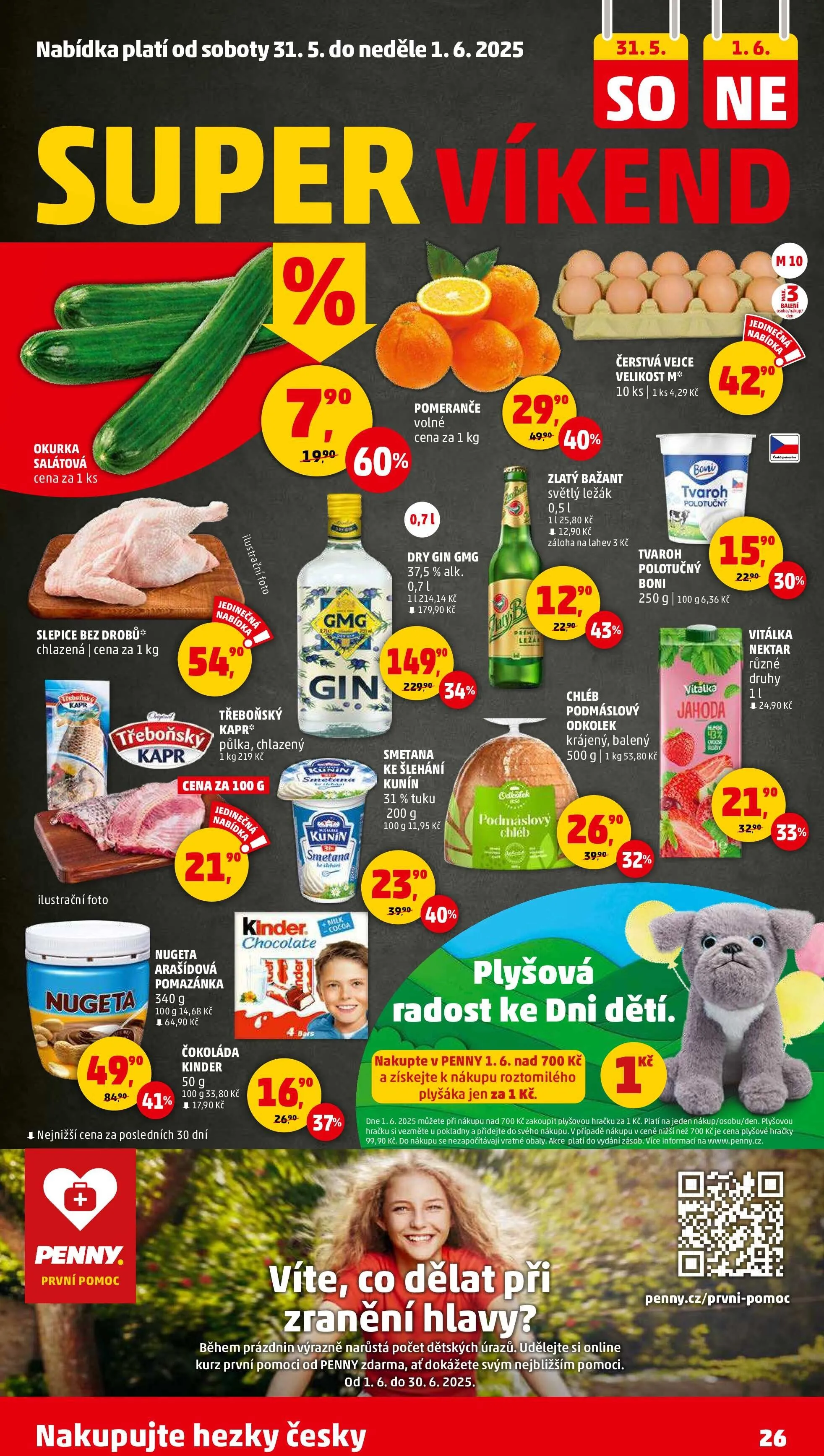 Navíc, při nákupu nad 700 Kč v den 1.6.2025, můžete získat roztomilého plyšáka za pouhou 1 Kč. Nezapomeňte také na možnost zúčastnit se online kurzu první pomoci zdarma, který probíhá od 1.6. do 30.6.2025. Nakupujte hezky česky v Penny!