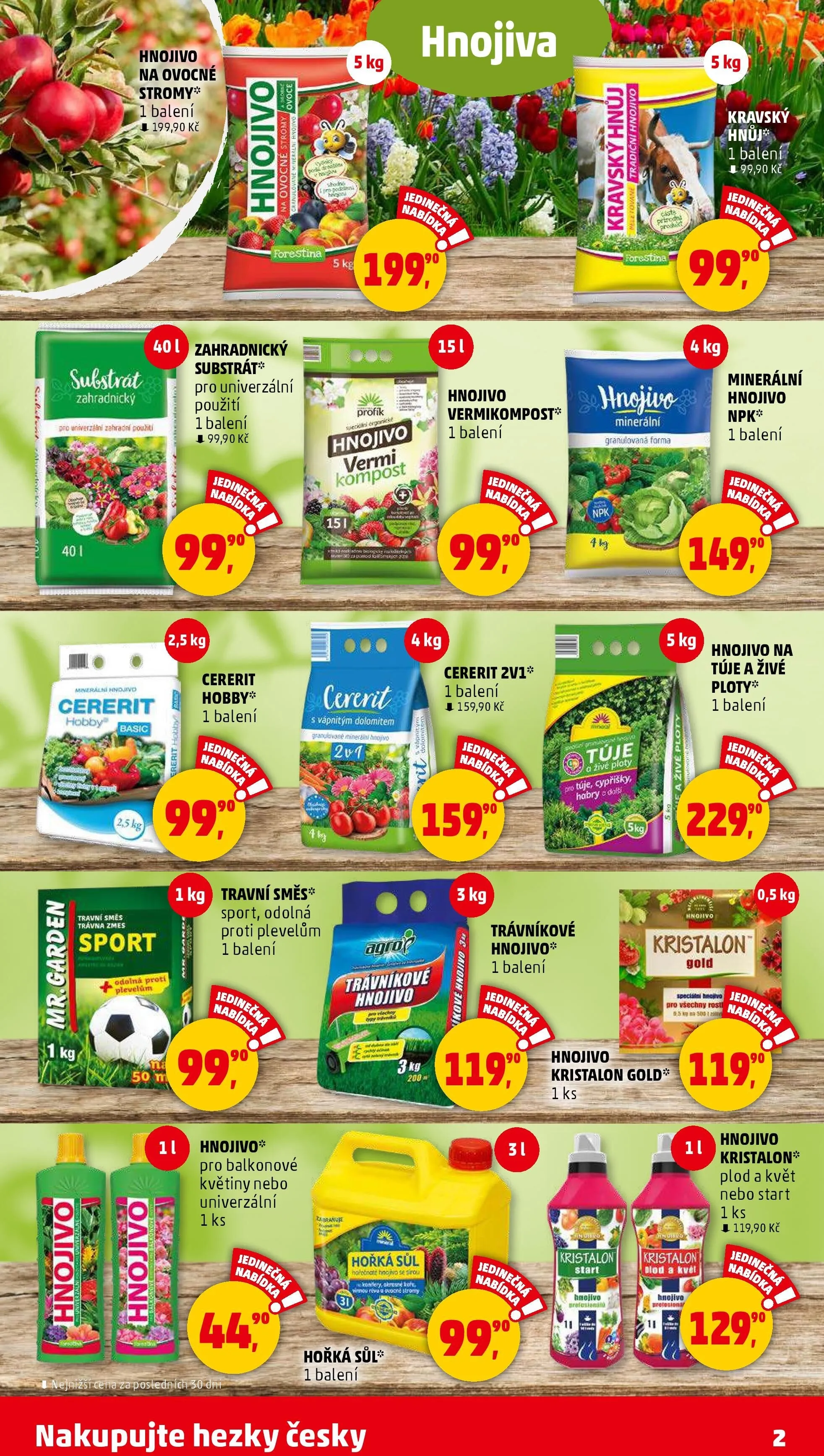Dále nabízíme minerální hnojivo Cererit za 159,90 Kč a travní směs odolnou proti plevelům za 99 Kč.