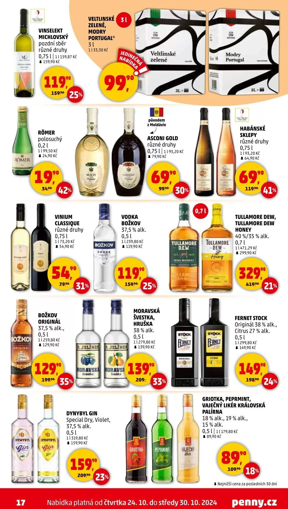 V letáku obchodu Penny Market najdete širokou nabídku kvalitních nápojů za skvělé ceny. Mezi nimi se objevují vína jako Vinselekt Michlovský Pozdní sběr za 159,90 Kč a Veltlínské zelené z Moldávie za 133,30 Kč. Pro milovníky destilátů je k dispozici Božkov vodka za 119,90 Kč a Tullamore Dew za 299,90 Kč. Nezapomeňte také na gin Dynybyl special dry za 159,90 Kč a likéry jako Griotka a Vaječný likér Královská palírna za 89,90 Kč. Tato nabídka platí od čtvrtka 24. října a je ideální pro všechny, kteří hledají kvalitní produkty za výhodné ceny.
