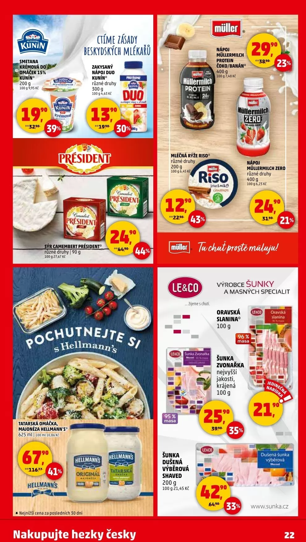 V letáku obchodu Penny Market najdete širokou nabídku kvalitních potravin. Mezi nimi se objevují krémové smetany a zakysané nápoje značky Kunín, které jsou skvělou volbou pro každodenní vaření a pečení. Dále si můžete vybrat z různých druhů mléčných nápojů Müller, včetně proteinových variant a mléčné rýže.