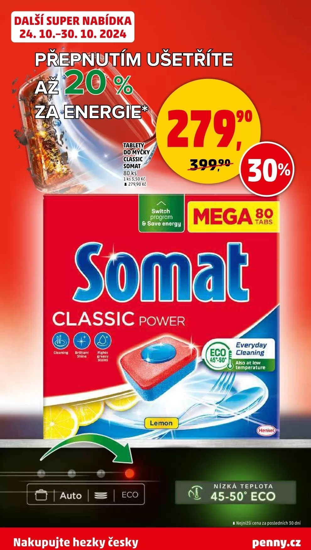 Mezi nimi jsou tablety do myčky Classic Somat, které jsou nyní za akční cenu 279,90 Kč.