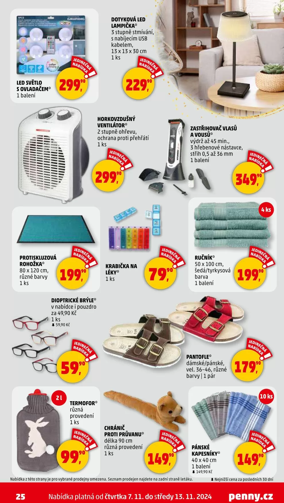 V letáku obchodu Penny Market najdete širokou nabídku produktů, které potěší každého zákazníka. Mezi nimi je LED světlo s ovladačem za 199 Kč, protiskluzová rohožka o rozměrech 80 x 120 cm v různých barvách za 299 Kč, a dotyková LED lampička s nabíjecím USB kabelem za 229 Kč.