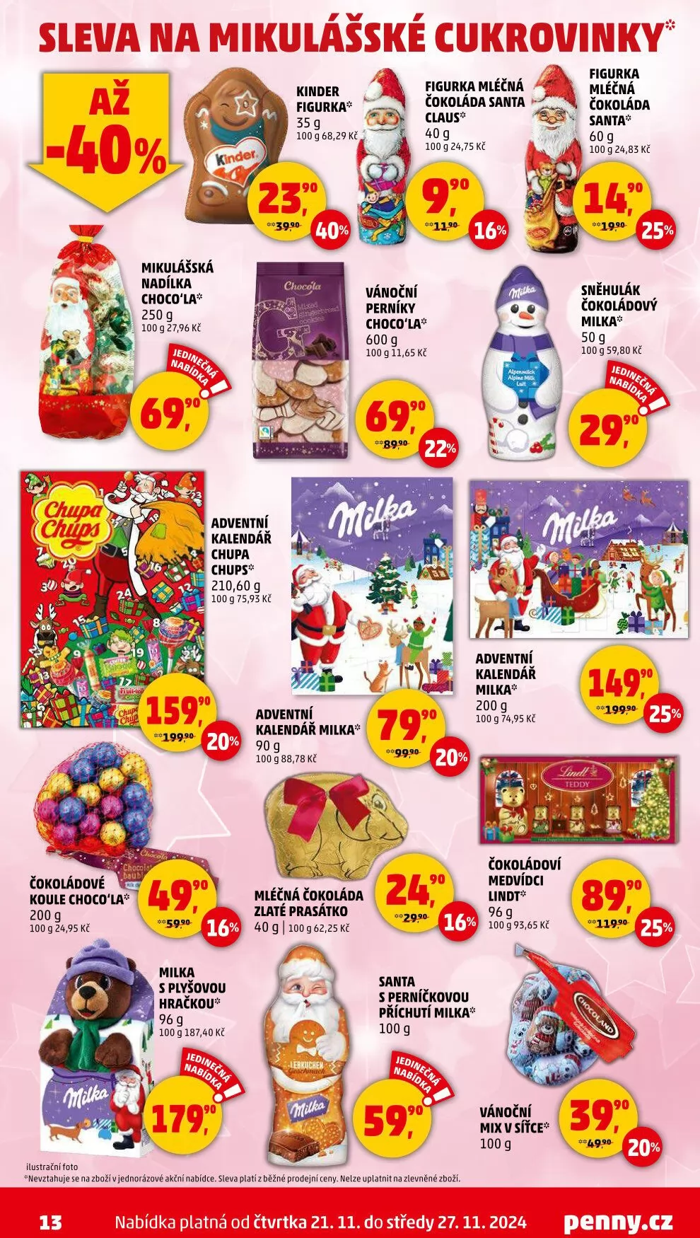 V letáku obchodu Penny Market najdete širokou nabídku mikulášských a vánočních cukrovinek.