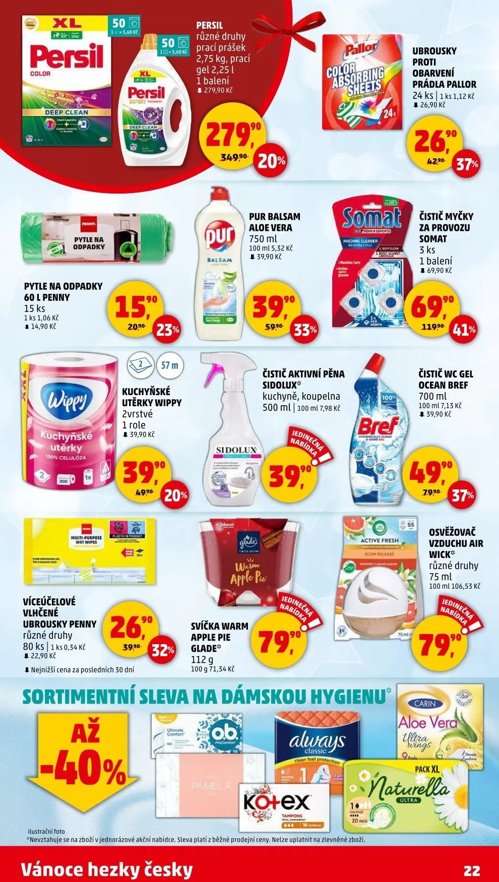 V letáku obchodu Penny Market najdete širokou nabídku užitečných produktů pro domácnost. Mezi nimi jsou pytle na odpadky o objemu 60 l za 14,90 Kč, které obsahují 15 kusů. Dále nabízíme víceúčelové vlhčené ubrousky Penny v balení 80 ks za 22,90 Kč.