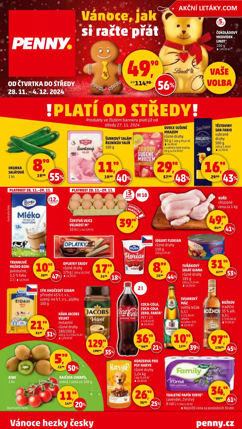 V letáku obchodu Penny Market od 28.11. do 4.12. 2024 najdete širokou nabídku vánočních produktů a dalších potravin.
