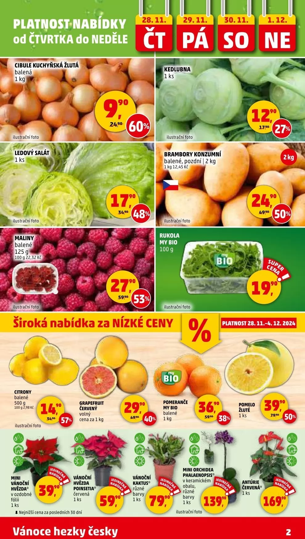 V letáku obchodu Penny Market najdete širokou nabídku čerstvých produktů za nízké ceny. Od čtvrtka do neděle si můžete zakoupit kuchyňskou cibuli balenou za 90 Kč za 1 kg. Dále je v nabídce ledový salát a kedlubna, které jsou ideální pro přípravu salátů. Brambory konzumní, balené, jsou k dostání za 12,45 Kč za 2 kg.