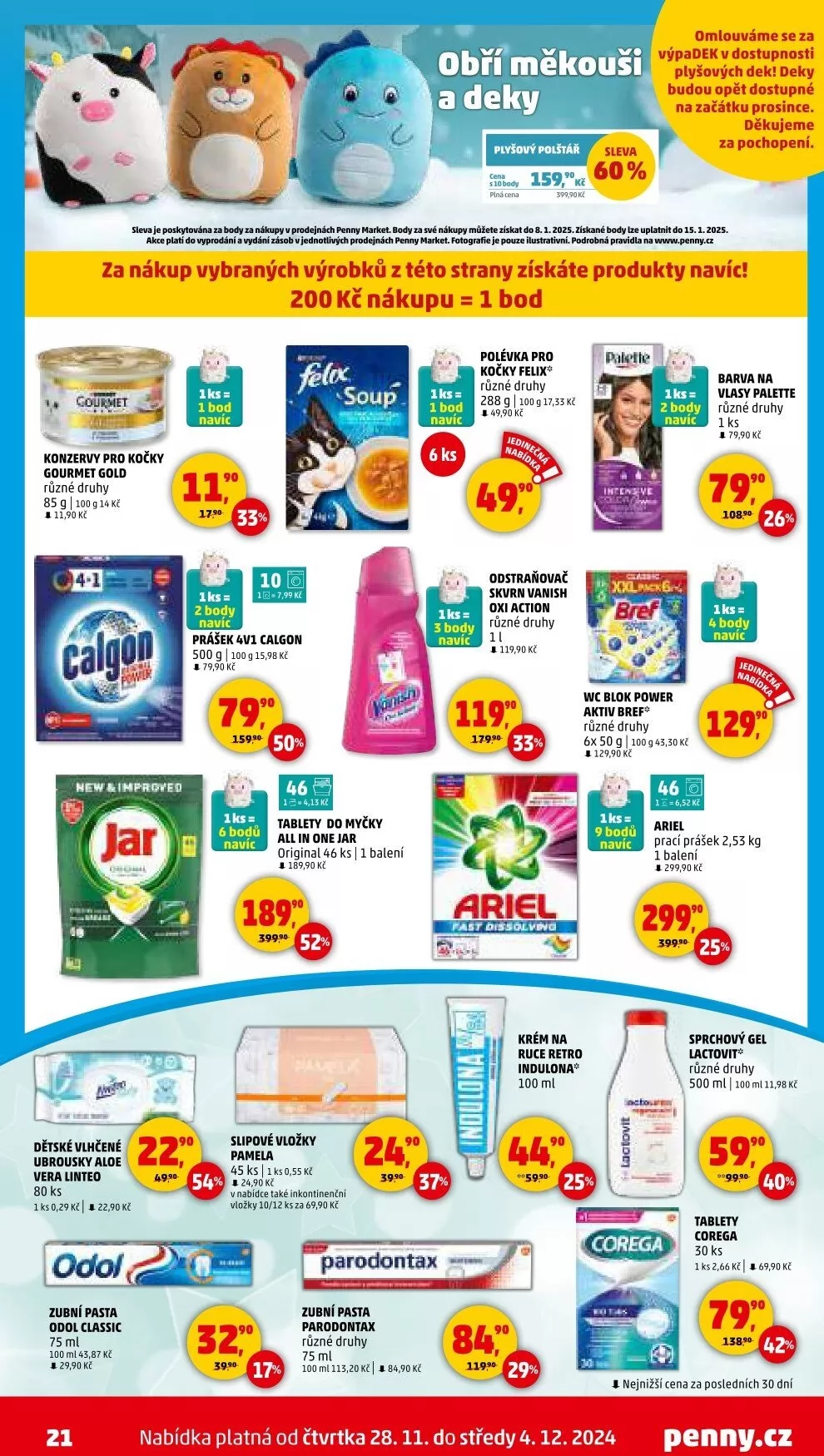 V letáku obchodu Penny Market najdete širokou nabídku produktů se slevami a speciálními akcemi. Mezi oblíbené položky patří plyšové polštáře a deky, které jsou nyní za zvýhodněnou cenu 159 Kč. Omlouváme se za dočasný výpadek dostupnosti plyšových dek, které budou opět k dostání na začátku prosince.