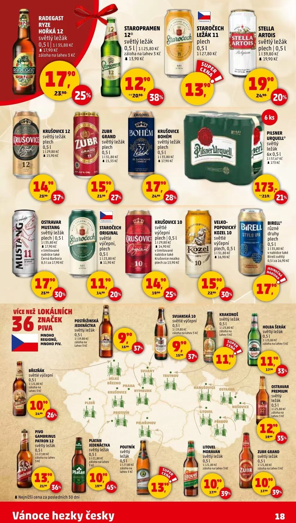 Nezapomeňte také na Pilsner Urquell a Krušovice, které jsou v plechovkách za 29,80 Kč a 15,90 Kč. Pro milovníky nealkoholických variant je k dispozici Krušovice nealko za 13,90 Kč.