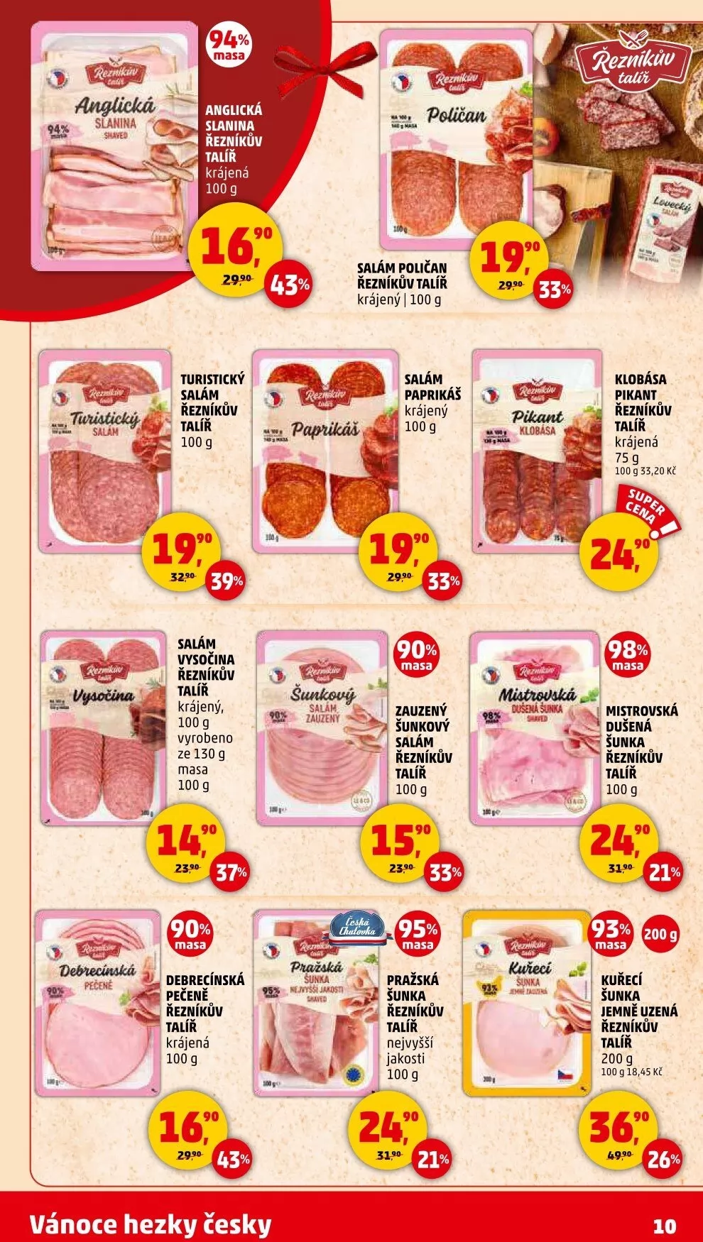 V letáku obchodu Penny Market najdete širokou nabídku kvalitních masných výrobků. Mezi nimi se objevují různé druhy slaniny, jako je anglická slanina a debrecínská, které jsou ideální pro přípravu snídaní nebo jako pochoutka na talíř. Dále si můžete vybrat z řezníkův talíř, který zahrnuje salámy jako vysočina, poličan a pikantní klobásu. Všechny produkty jsou pečlivě vyrobeny z kvalitního masa a nabízejí skvělou chuť. Nezapomeňte také na jemně uzenou kuřecí šunku, která je skvělou volbou pro zdravější stravování. Všechny výrobky jsou dostupné v praktickém balení, což usnadňuje jejich použití v kuchyni.