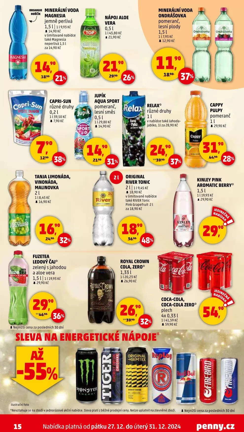 V letáku obchodu Penny Market najdete širokou nabídku nápojů a minerálních vod.