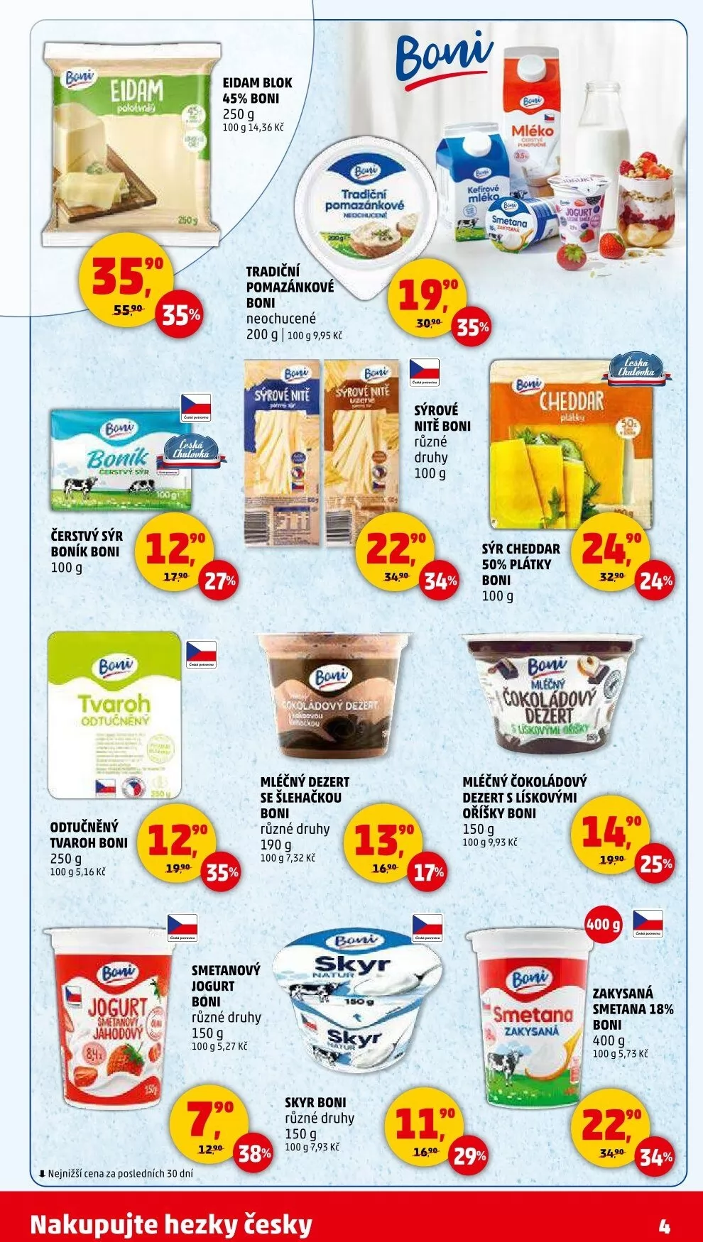 V nabídce jsou i sýrové nitě a plátky sýra, ideální pro rychlé občerstvení. Pro zdravější variantu si můžete vybrat smetanový jogurt nebo zakysanou smetanu. Všechny produkty jsou k dostání za výhodné ceny, s mnoha z nichž můžete ušetřit až 35%. Nakupujte hezky česky a využijte nejnižší ceny za posledních 50 dní!