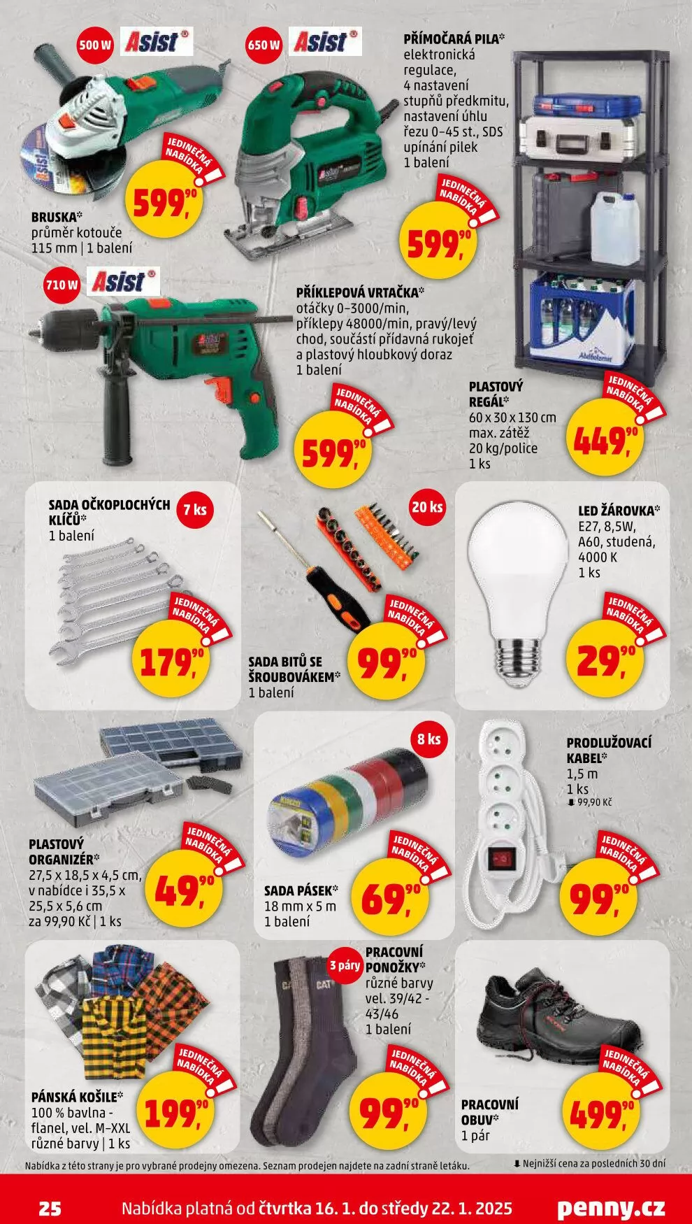 Dále v nabídce najdete LED žárovky, prodlužovací kabely a další užitečné produkty. Nezapomeňte, že nabídka platí od 16. do 22. ledna 2025 a je omezena na vybrané prodejny.