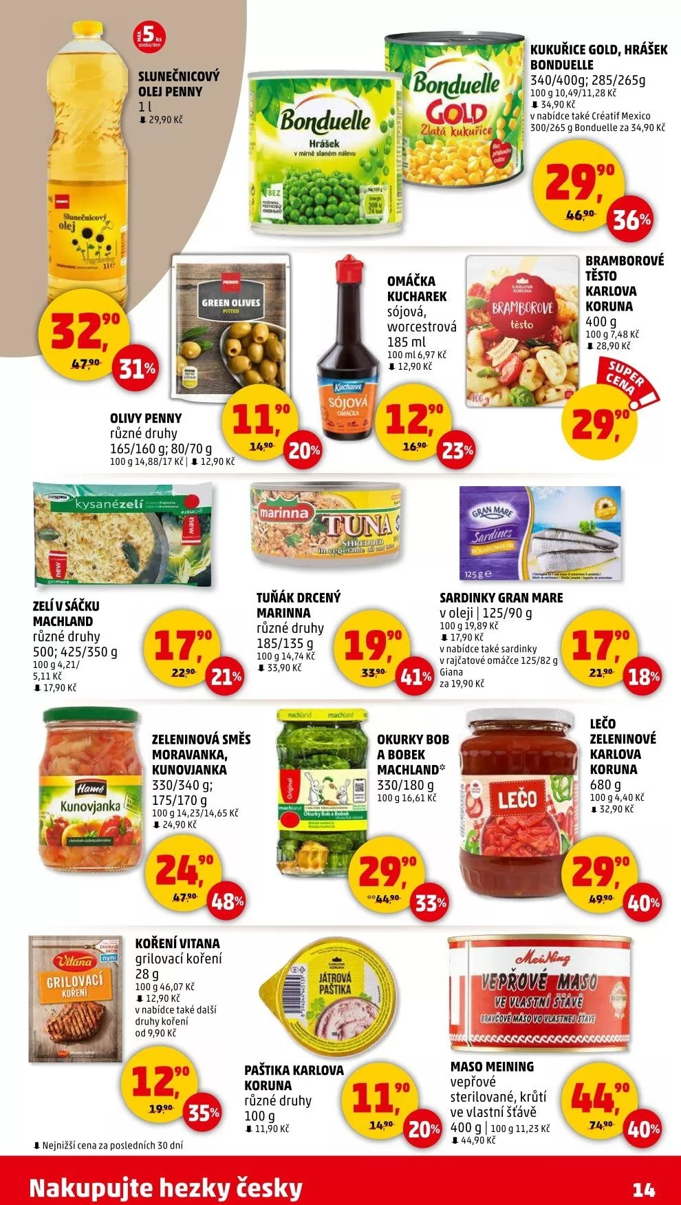 V letáku obchodu Penny Market najdete širokou nabídku kvalitních produktů za skvělé ceny. Mezi nimi se objevují oblíbené značky jako Bonduelle, kde si můžete vybrat z hrášku, kukuřice nebo omáček. Například slunečnicový olej Penny je nyní za 29,90 Kč.