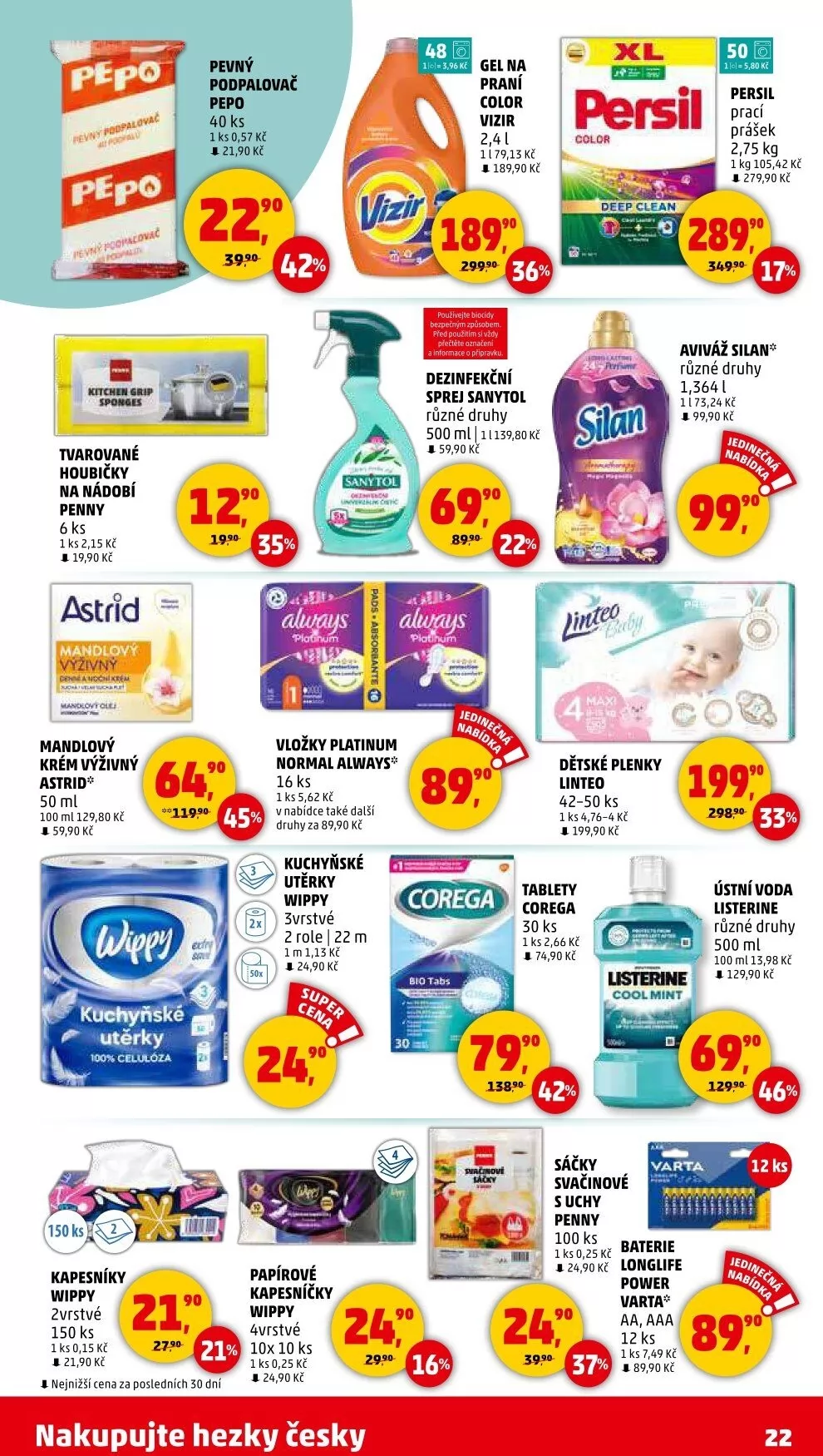 V letáku obchodu Penny Market najdete širokou nabídku produktů za skvělé ceny. Mezi nimi jsou tvarované houbičky na nádobí Penny (6 ks) za 19,90 Kč, mandlový výživný krém Astrid (50 ml) za 59,90 Kč a pevný podpalovač Pepo (40 ks) za 21,90 Kč.