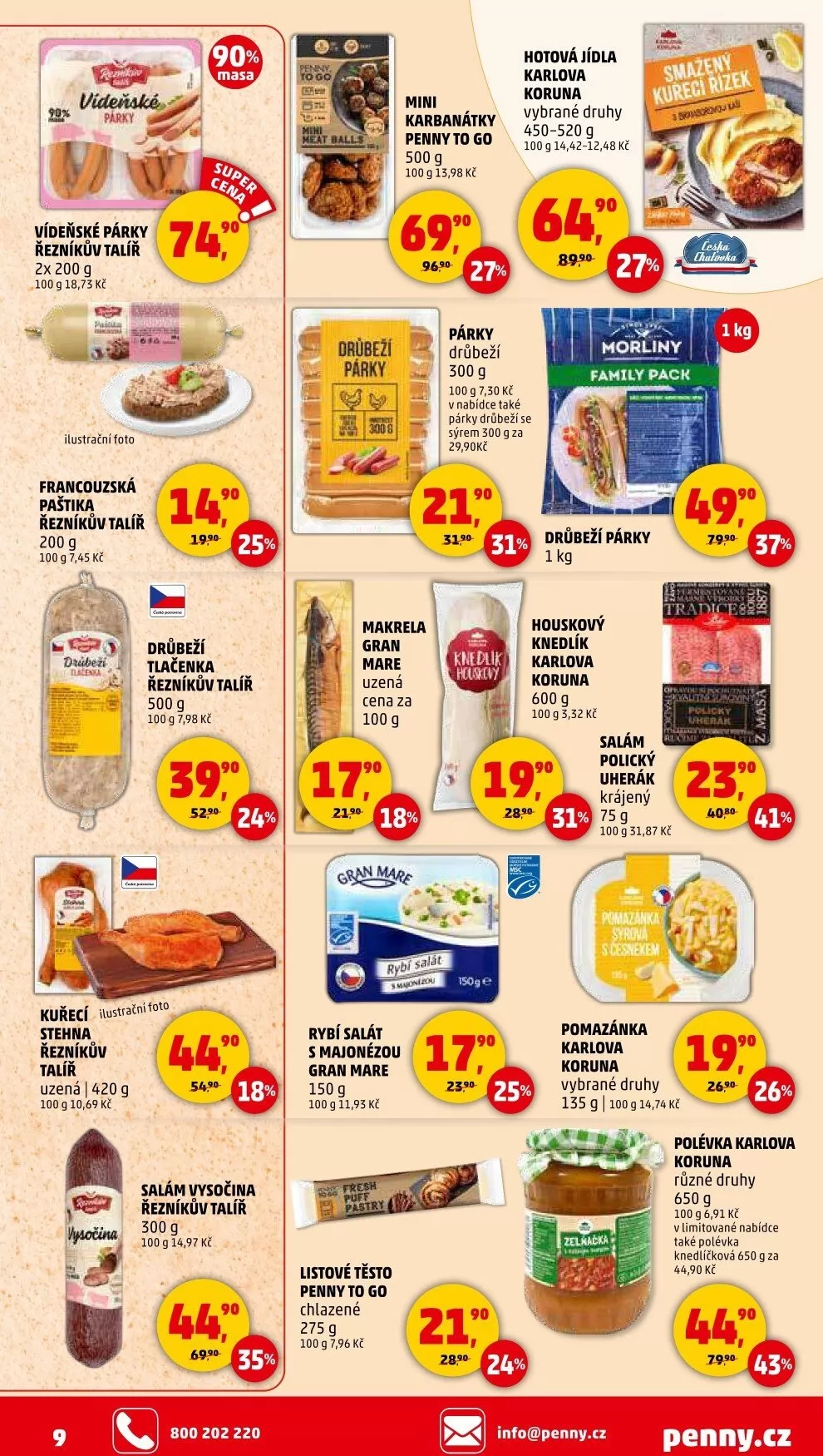 V letáku obchodu Penny Market najdete širokou nabídku kvalitních masných výrobků a dalších potravin. Mezi hlavními produkty se objevují vídeňské párky a řezníkův talíř, které jsou ideální pro rychlé občerstvení. Dále nabízíme francouzskou paštiku s 90% podílem masa a mini karbanátky Penny to go, které jsou skvělou volbou na cesty.