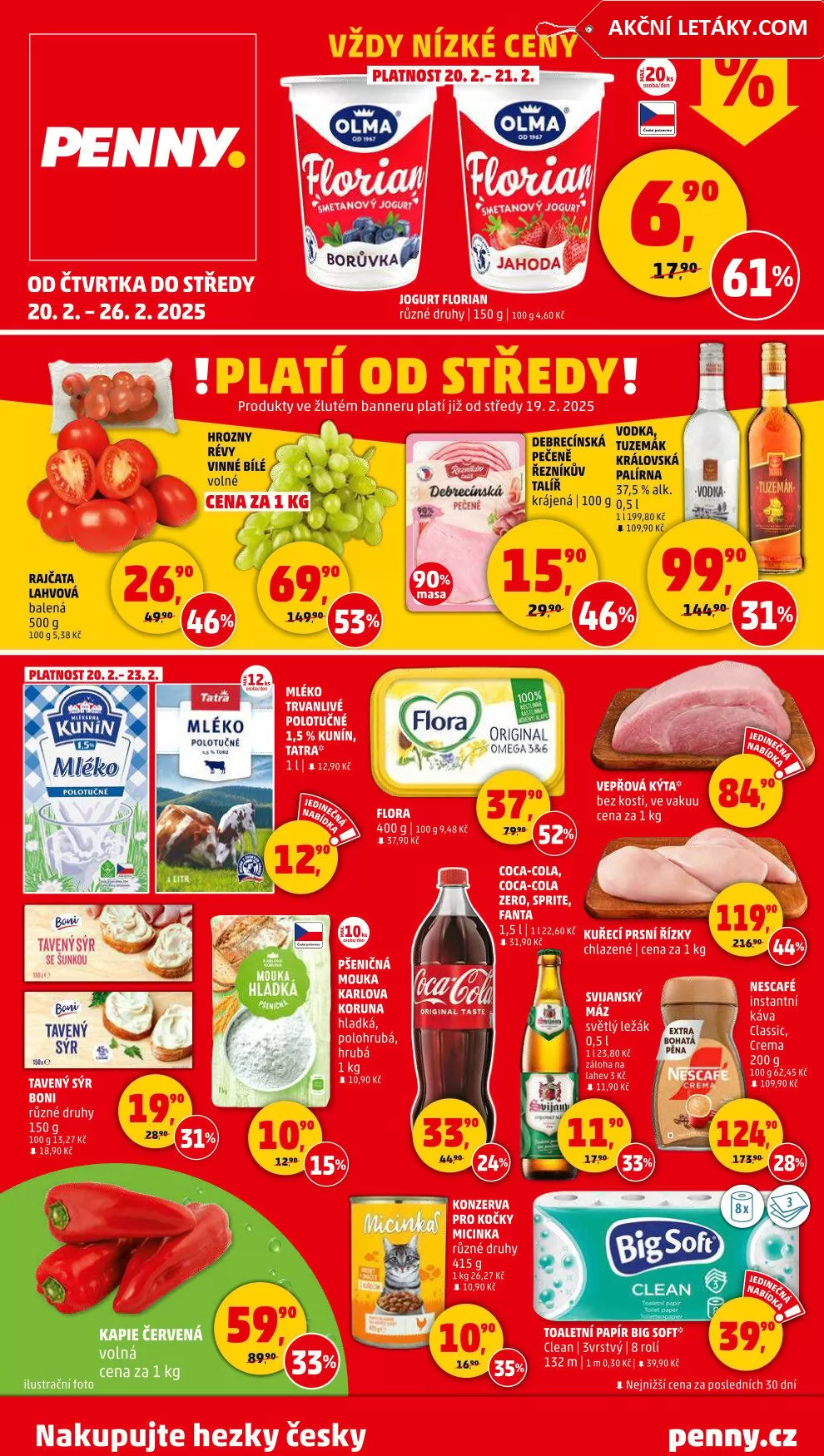 V Penny Marketu najdete vždy nízké ceny! Platnost aktuální nabídky je od 20. 2. do 26. 2. 2025. Od středy 19. 2. můžete využít speciální produkty ve žlutém banneru.