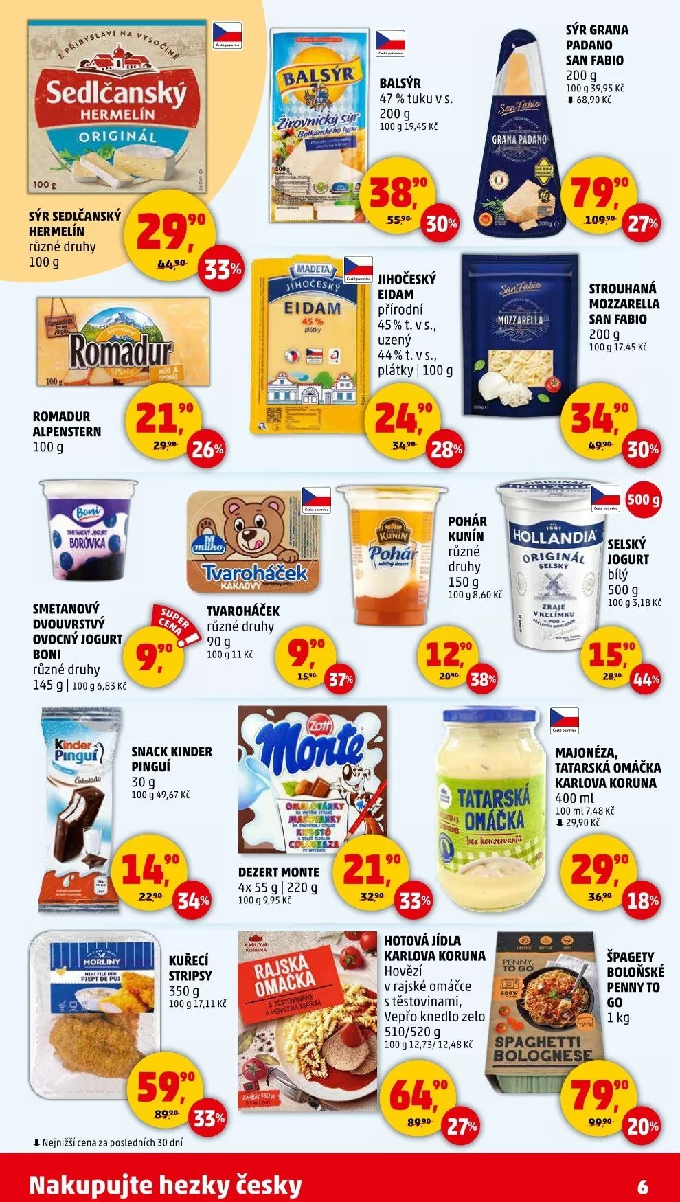 V letáku obchodu Penny Market najdete širokou nabídku kvalitních sýrů a mléčných výrobků. Mezi nimi se objevuje Sedlčanský hermelín, který je k dostání v originální variantě. Dále si můžete vybrat z různých druhů romaduru, žíčkového sýra a eidamu s 45% tuku.