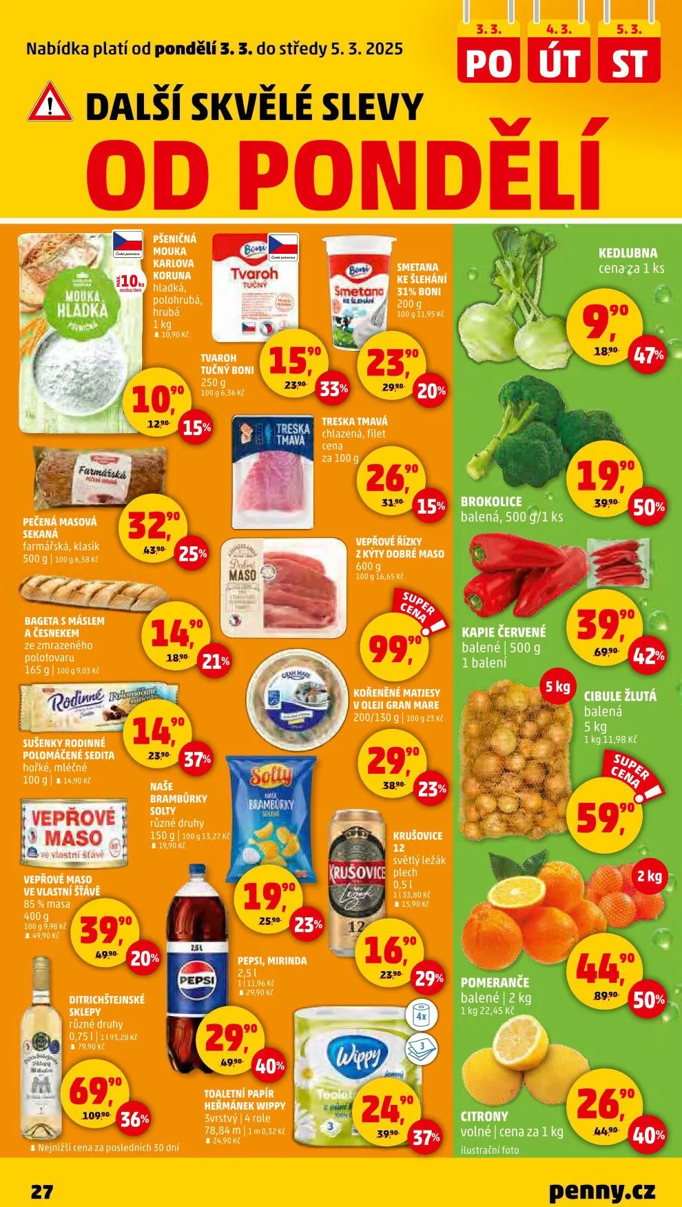 V letáku obchodu Penny Market najdete skvělé nabídky, které platí od pondělí 3.3. do středy 5.3.2025. Mezi produkty se objevují: