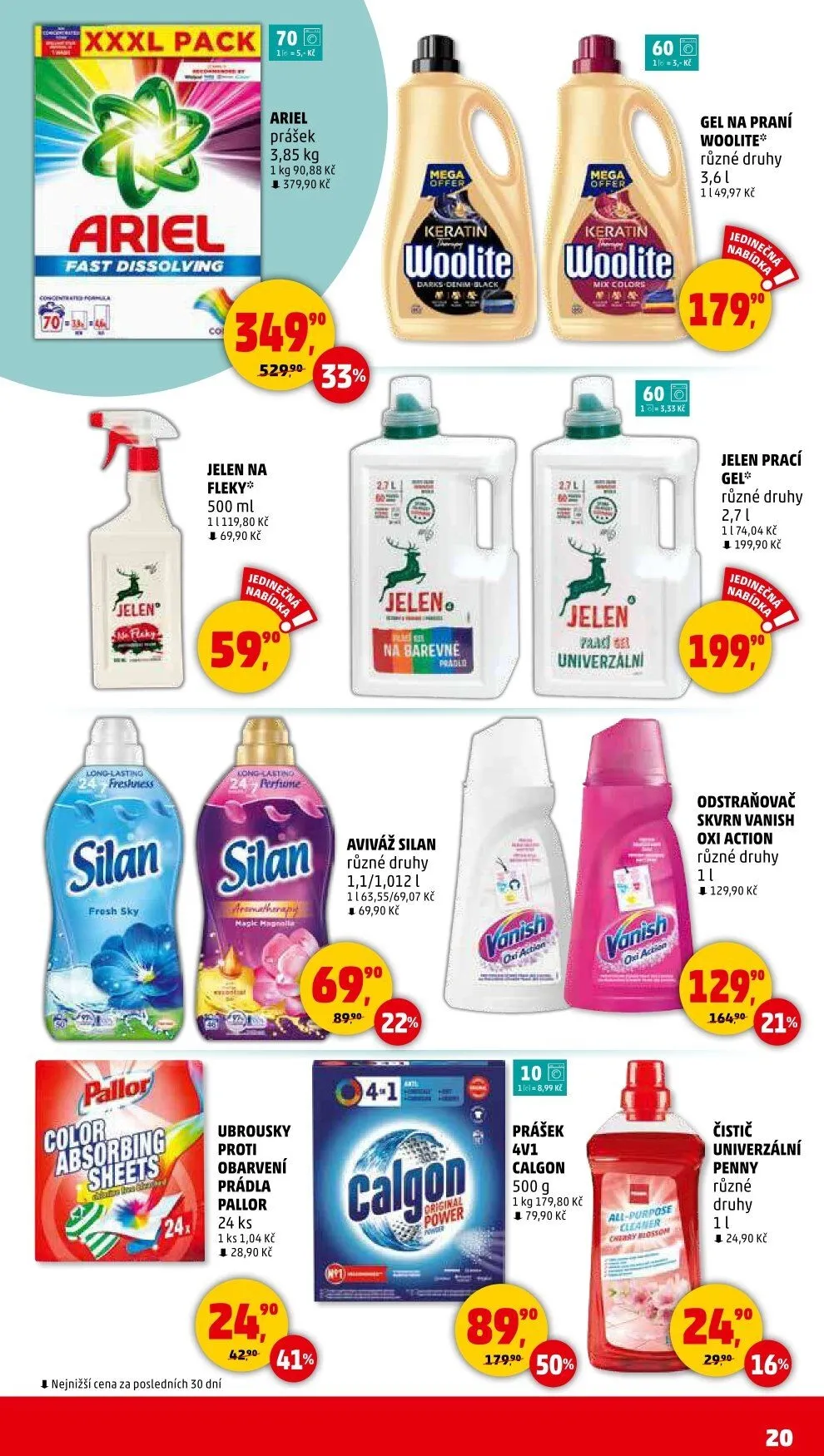 V letáku obchodu Penny Market najdete širokou nabídku pracích prostředků a čisticích přípravků. Mezi hlavní produkty patří: