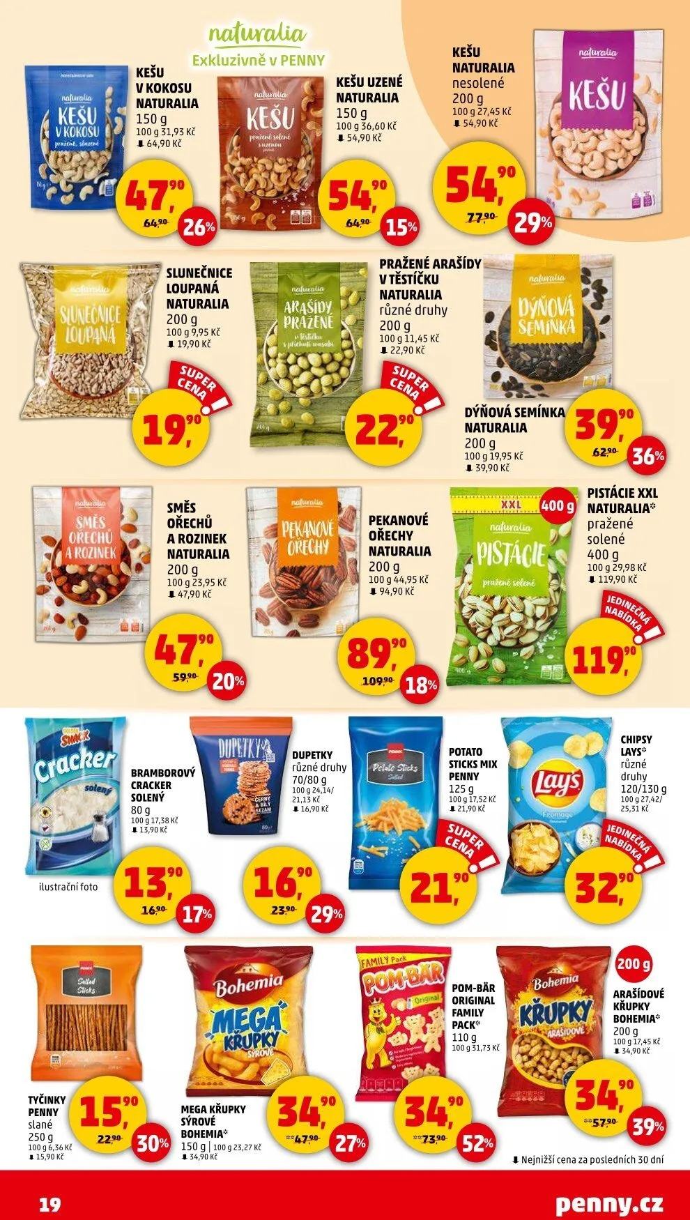 Nezapomeňte také na loupaná slunečnicová semínka za 19,90 Kč a směs ořechů a rozinek za 25,95 Kč.