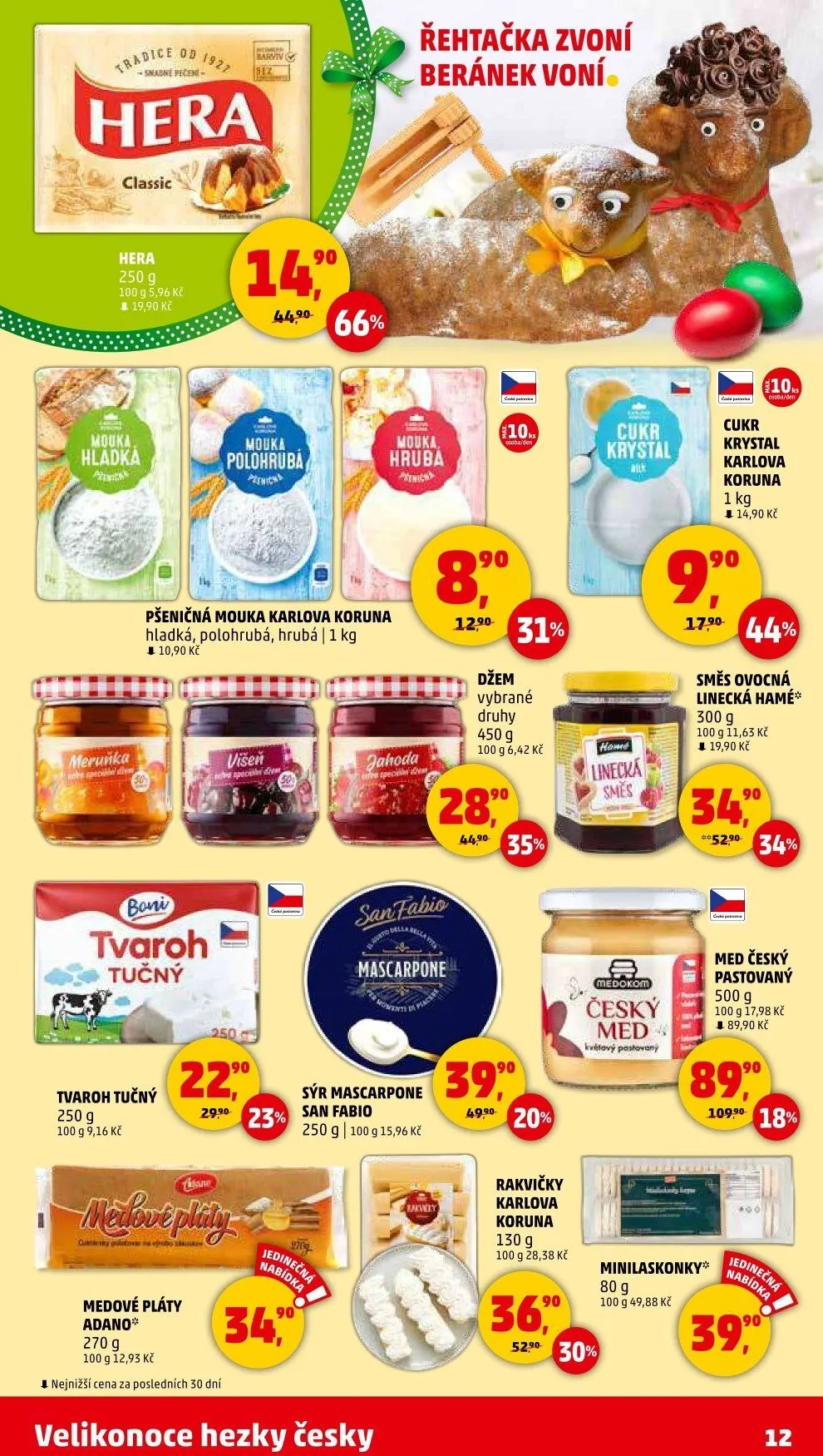 V letáku obchodu Penny Market najdete širokou nabídku produktů za skvělé ceny. Mezi nimi se objevují oblíbené položky jako sýr mascarpone San Fabio (250 g za 39,90 Kč) a český med (500 g za 89,90 Kč). Dále si můžete vybrat z různých druhů pšeničné mouky Karlova Koruna (1 kg za 10,90 Kč) nebo krystalového cukru (1 kg za 14,90 Kč).