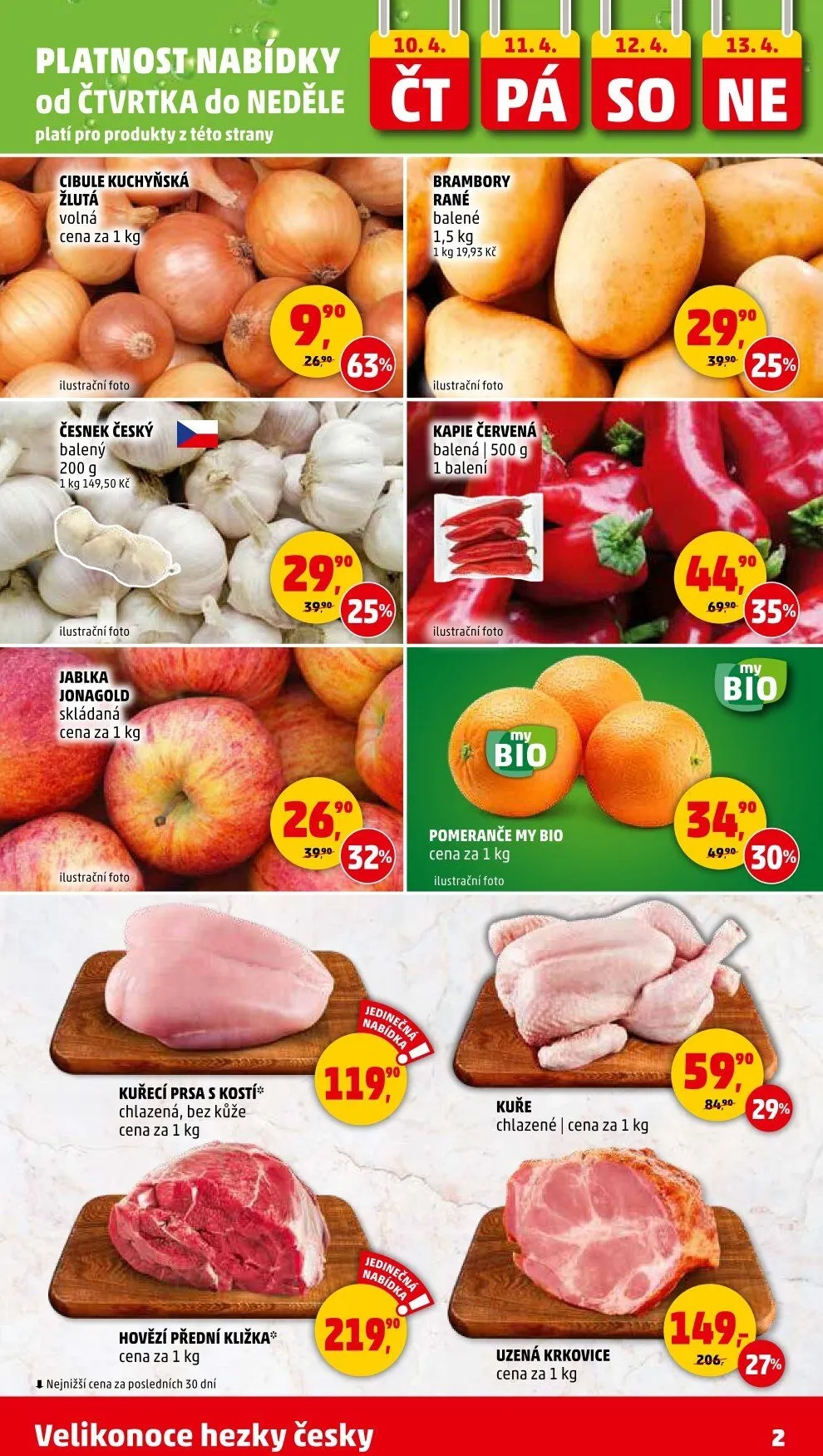 Mezi hlavními položkami se objevuje kuchyňská cibule žlutá, česnek český balený, a jablka odrůdy Jonagold.