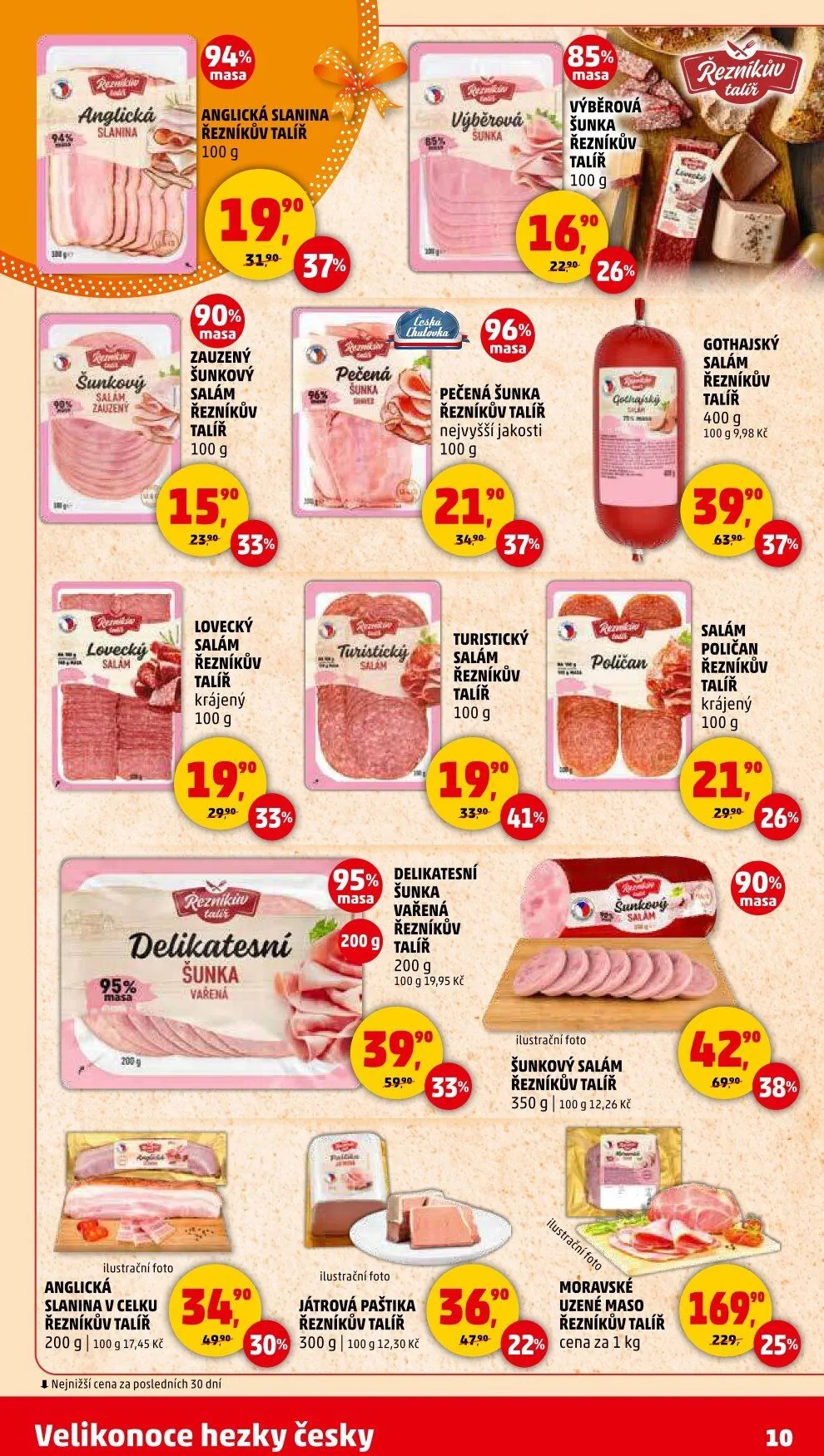 V letáku obchodu Penny Market najdete širokou nabídku kvalitních masných výrobků. Mezi nimi se objevují produkty jako anglická slanina, zauzený šunkový salám a lovecký salám, všechny z řezníkového talíře. Všechny tyto výrobky obsahují vysoký podíl masa, například delikatesní šunka vařená a turistický salám.