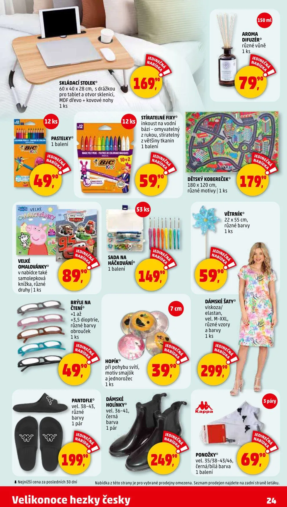 Zaujmou vás aroma difuzéry s různými vůněmi za 90 Kč, nebo skládací stolek s drážkou pro tablet a otvorem na sklenici, který měří 60 x 40 x 28 cm a je vyroben z MDF dřeva s kovovými nohami.
