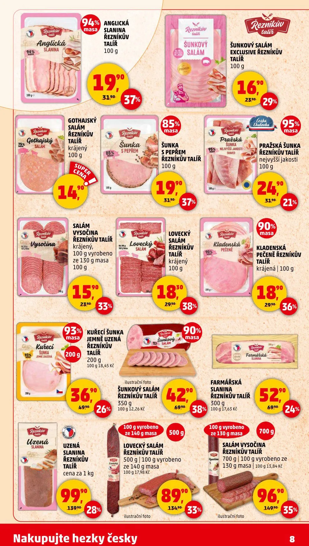 V letáku obchodu Penny Market najdete širokou nabídku kvalitních masných výrobků. Mezi nimi se objevují různé druhy salámů a šunek, jako je například řezníkův talíř s vysočinou, anglickou slaninou nebo loveckým salámem. Všechny produkty jsou vyrobeny z kvalitního masa, přičemž obsah masa se pohybuje kolem 90-95%.