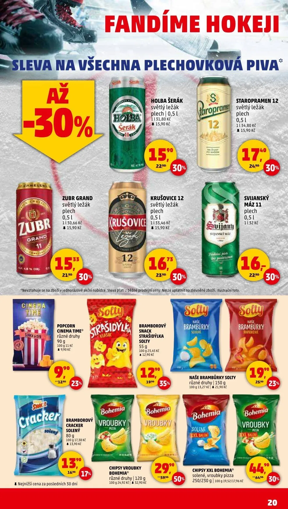 V letáku obchodu Penny Market najdete skvělé akce na plechovková piva, která jsou nyní se slevou 30%. Mezi nabízenými značkami jsou například Šerák, Krušovice, Staropramen a Svijanský Máz, přičemž cena za plechovku začíná na 15,90 Kč.