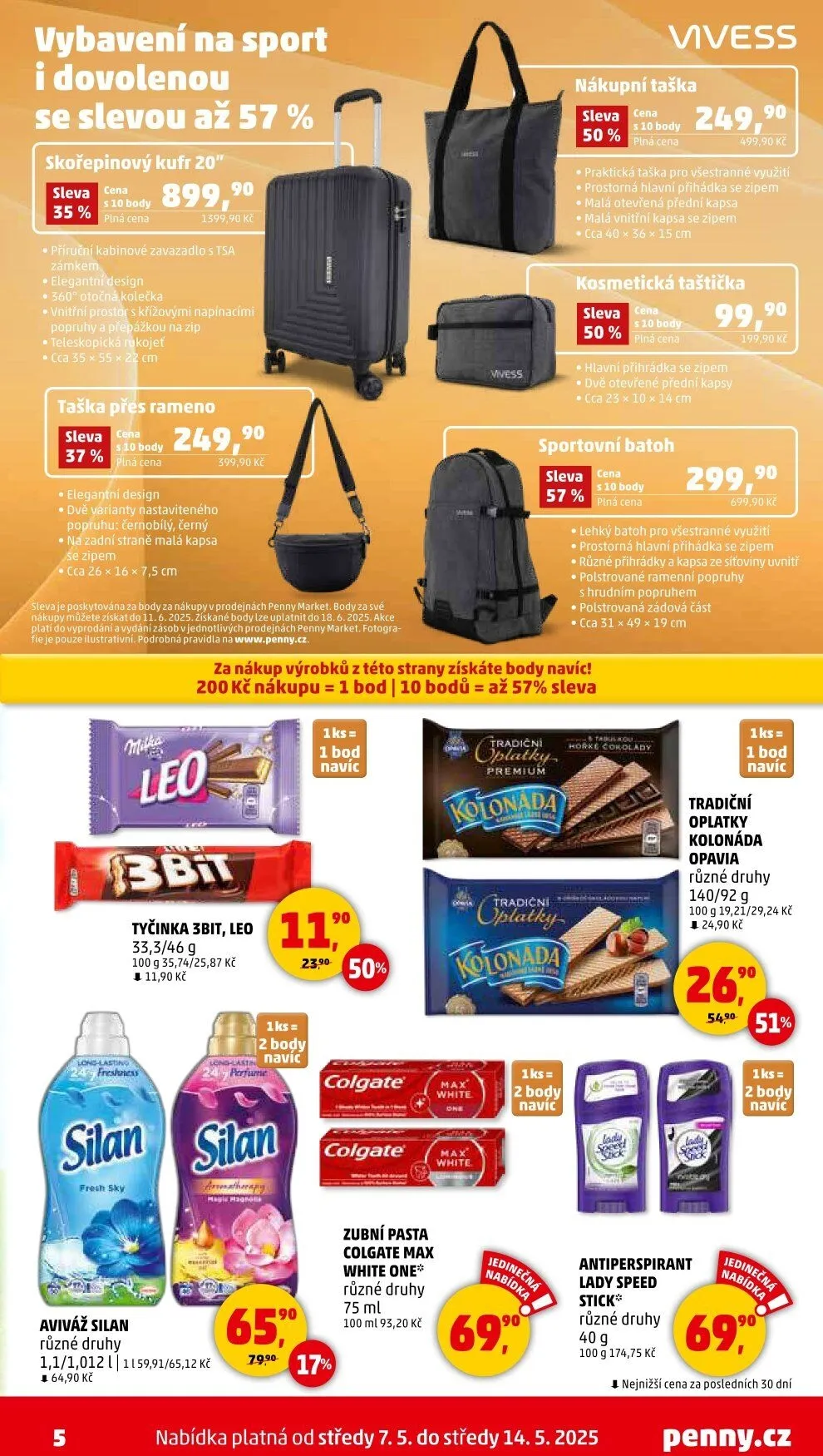 V Penny Marketu najdete skvělé vybavení na sport a dovolenou se slevou až 57 %. Mezi nabízenými produkty je skořepinový kufr za 899 Kč, který je ideální pro cestování. Dále nabízíme praktickou nákupní tašku za 9,90 Kč, která má prostornou hlavní přihrádku a malé kapsy.