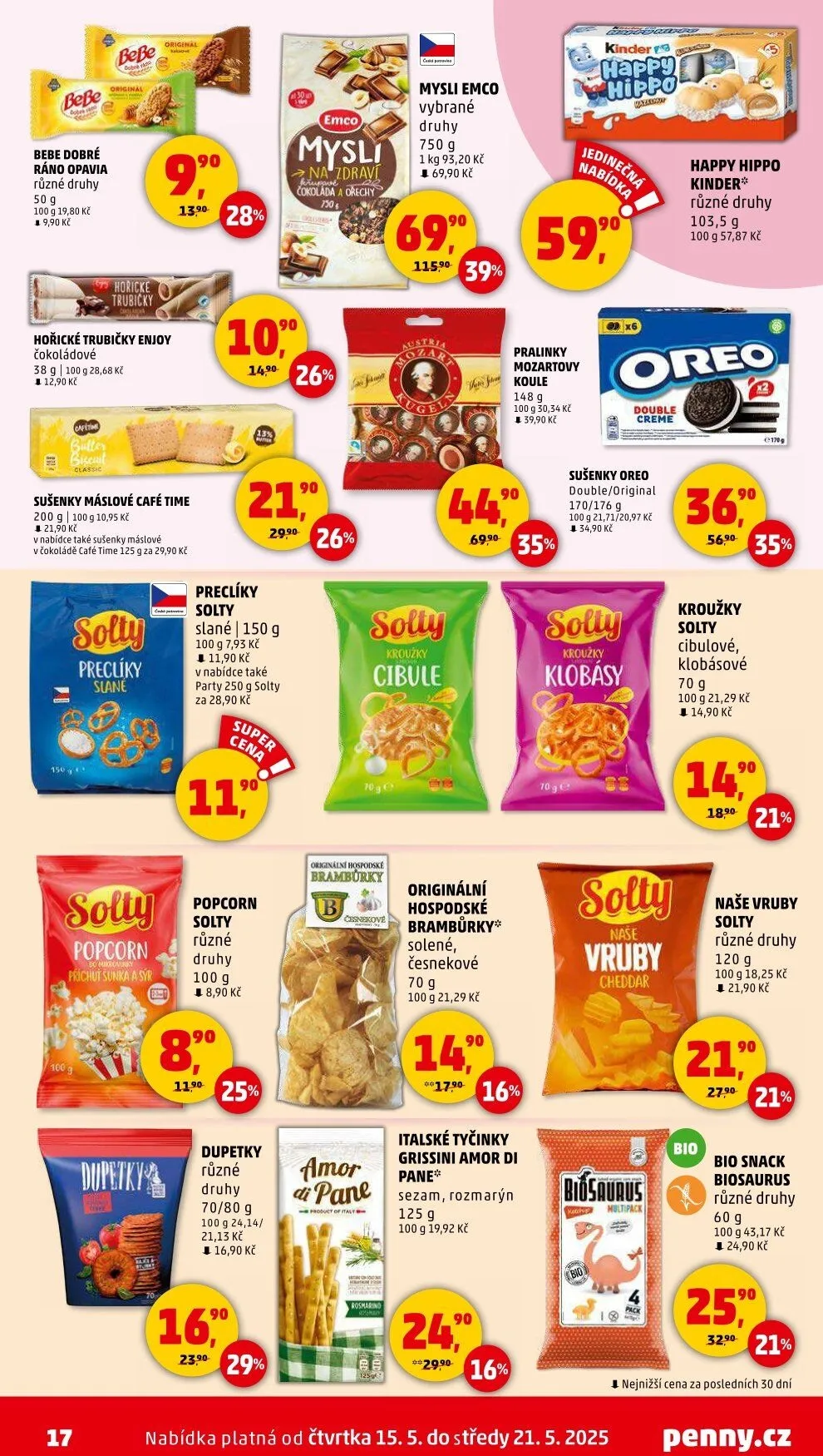 V letáku obchodu Penny Market najdete širokou nabídku chutných produktů. Mezi nimi jsou sušenky Bebe Dobré Ráno a Opavia v různých druzích, které si můžete pořídit za skvělou cenu. Dále si můžete vychutnat hořické trubičky Enjoy, máslové sušenky Café Time a také preclíky a popcorn v různých variantách.