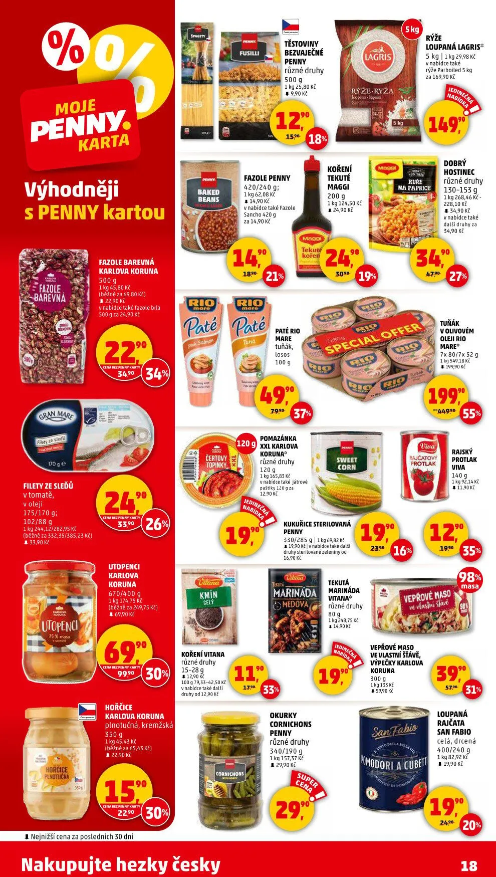 Nezapomeňte také na hořčici Karlova Koruna plnotučnou 350 g za 29,90 Kč a sterilovanou kukuřici Penny 340 g za 19,90 Kč.