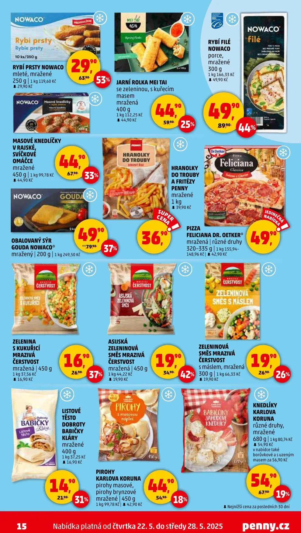 V nabídce jsou také knedlíky Karlova Koruna a pirohy různých druhů. Akce platí od 22. do 28. května 2025. Navštivte penny.cz pro více informací.