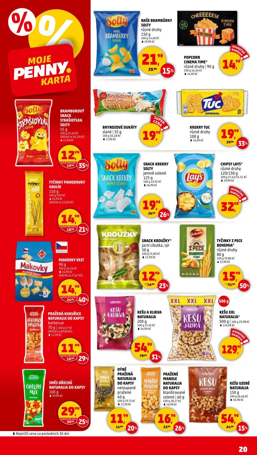 Pro milovníky popcornu je tu "cinema time" popcorn v různých příchutích. Nezapomeňte také na praženou kukuřici a směs ořechů "naturalia do kapsy", která zahrnuje kešu a blanšírované mandle.
