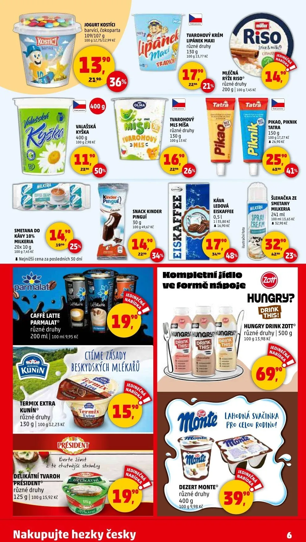Na závěr nezapomeňte na šlehačku ze smetany Milkeria, 241 ml za 132,90 Kč/100 ml, a dezert Monte, 400 g za 9,98 Kč/100 g. Nakupujte hezky česky!
