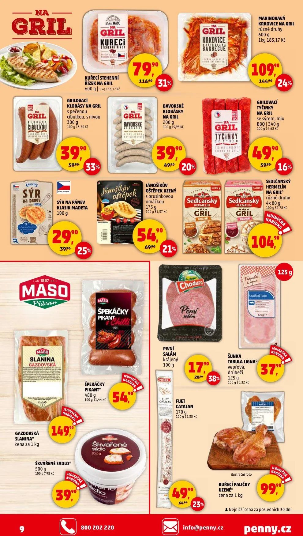 V letáku obchodu Penny Market najdete širokou nabídku grilovacích specialit. Mezi nimi se objevují kuřecí stehenní řízky na gril (600 g za 135,17 Kč), bavorské klobásky (200 g za 39,90 Kč) a marinovaná krkovice (600 g za 183,17 Kč). Pro milovníky sýra jsou k dispozici grilovací klobásy s pečenou cibulkou a nivou (300 g za 39,90 Kč) a sýr na pánev od Madety (250 g za 31,37 Kč).