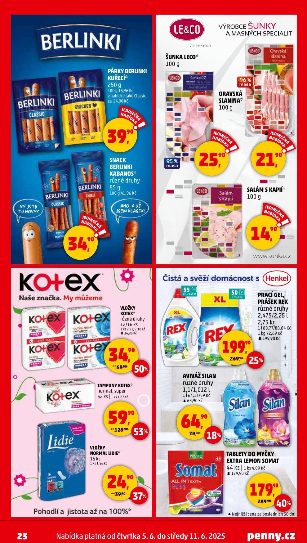 V letáku obchodu Penny Market najdete širokou nabídku produktů za skvělé ceny. Mezi oblíbené položky patří berlinki, které jsou k dispozici v různých variantách, včetně kuřecích párků a kabanosů. Dále si můžete vybrat z hygienických potřeb, jako jsou vložky a tampony značky Kotex.