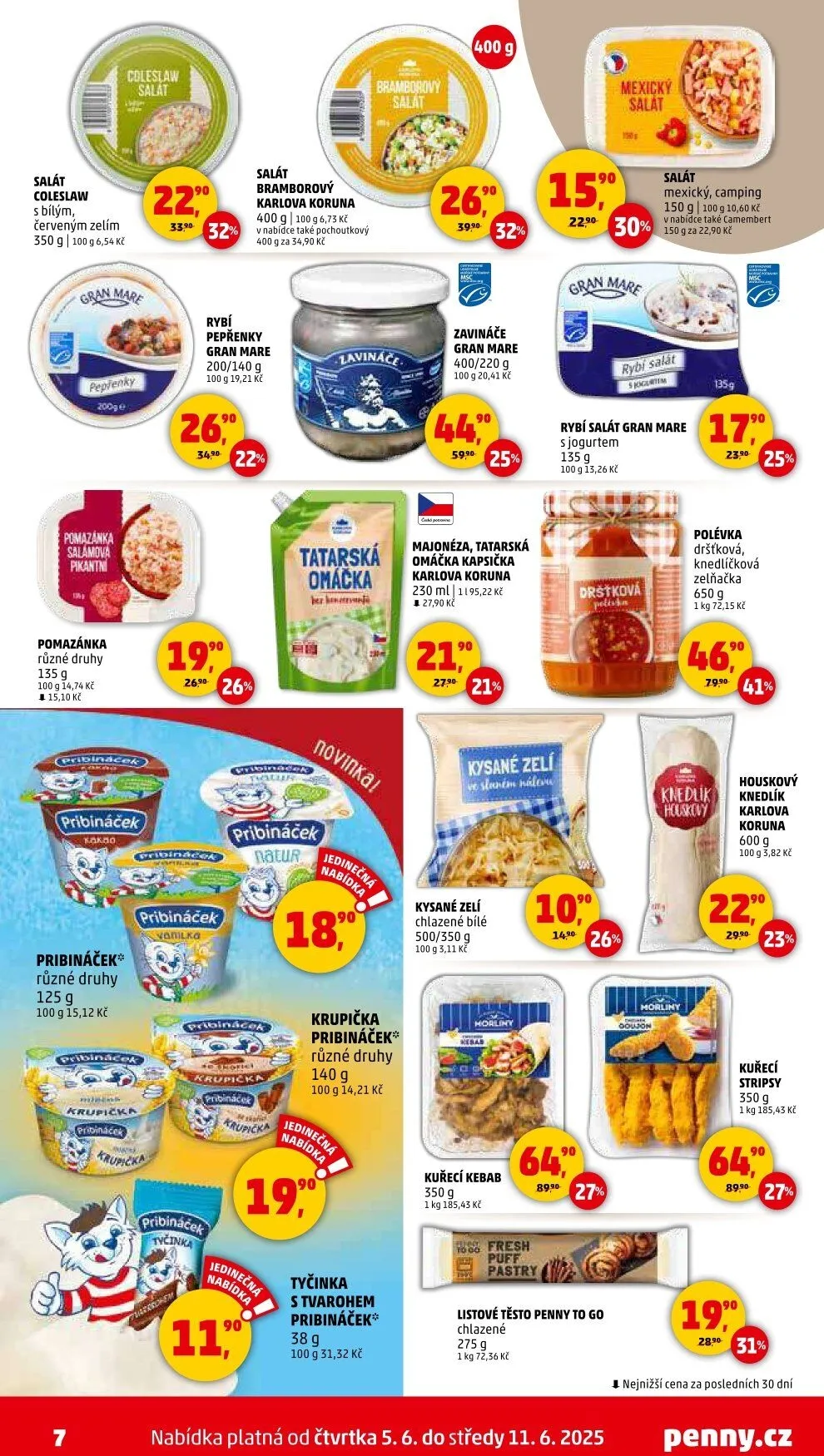 Nezapomeňte také na houskový knedlík Karlova koruna (600 g za 22,92 Kč) a kuřecí stripsy (350 g za 185,43 Kč). Všechny produkty jsou k dispozici za výhodné ceny a nabídka platí od 5. do 11. června 2025. Navštivte penny.cz pro více informací!