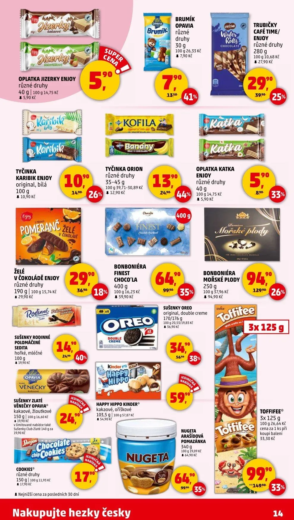 Dalšími lákadly jsou sušenky Oreo, Kinder Happy Hippo a arašídová pomazánka Nugeta. Všechny produkty jsou k dispozici za výhodné ceny, takže neváhejte a nakupujte hezky česky!